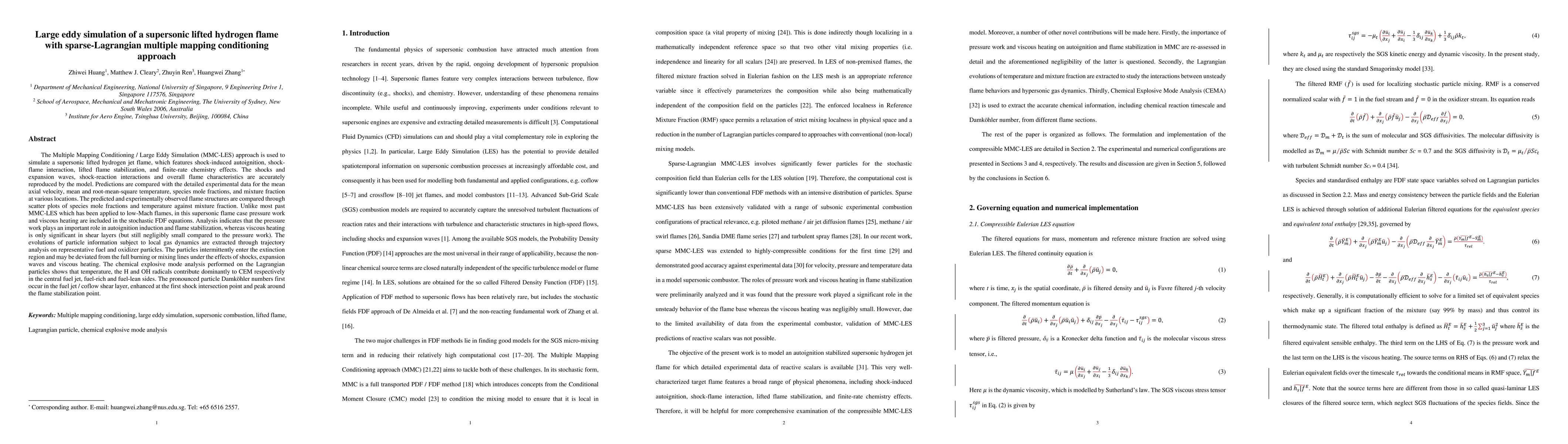 This paper employs the MMC-LES approach to simulate a supersonic lifted hydrogen jet flame, capturing shock-induced autoignition and shock-flame interaction. The model accurately reproduces flame characteristics and compares well with experimental data, highlighting the significant role of pressure work in autoignition and stabilization, while viscous heating's effect is minor.