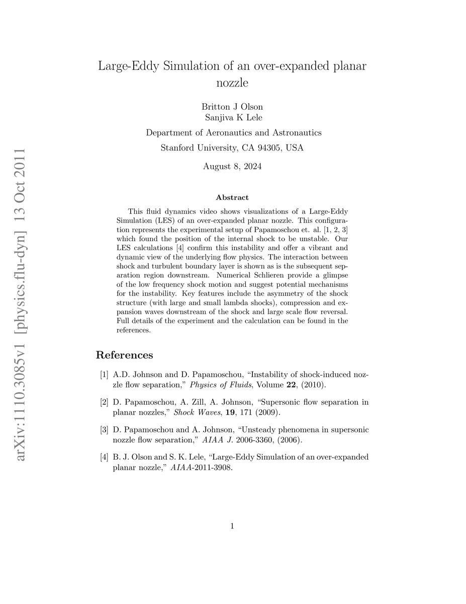 This fluid dynamics video shows visualizations of a Large-Eddy Simulation (LES) of an over-expanded planar nozzle. This configuration represents the experimental setup of Papamoschou et. al. which found the position of the internal shock to be unstable. Our LES calculations confirm this instability and offer a vibrant and dynamic view of the underlying flow physics. The interaction between shock and turbulent boundary layer is shown as is the subsequent separation region downstream. Numerical Schlieren provide a glimpse of the low frequency shock motion and suggest potential mechanisms for the instability. Key features include the asymmetry of the shock structure (with large and small lambda shocks), compression and expansion waves downstream of the shock and large scale flow reversal. Full details of the experiment and the calculation can be found in the references.
