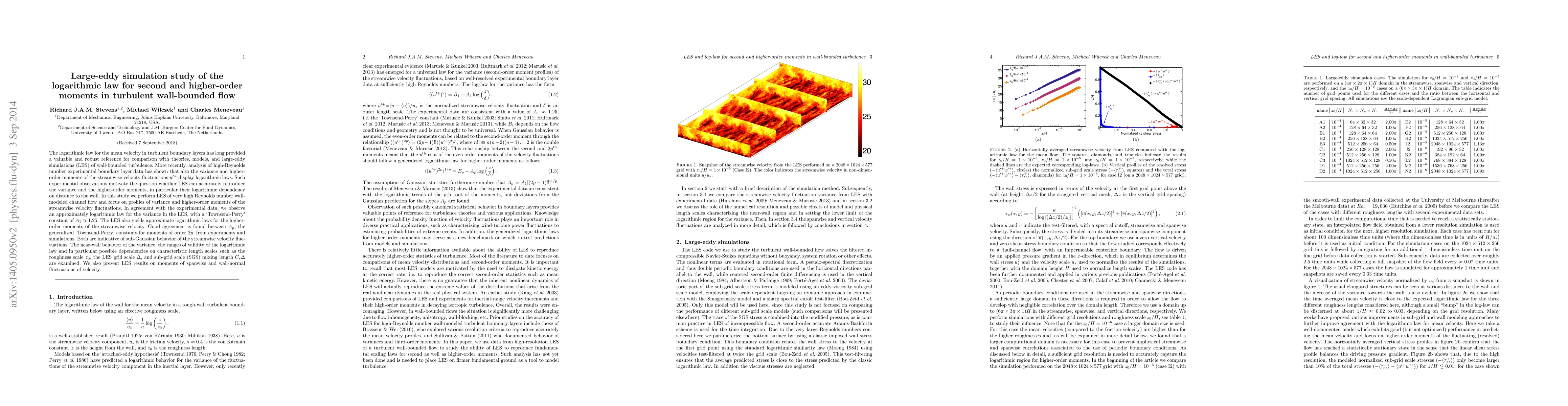 The logarithmic law for the mean velocity in turbulent boundary layers has long provided a valuable and robust reference for comparison with theories, models, and large-eddy simulations (LES) of wall-bounded turbulence. More recently, analysis of high-Reynolds number experimental boundary layer data has shown that also the variance and higher-order moments of the streamwise velocity fluctuations $u'^{+}$ display logarithmic laws. Such experimental observations motivate the question whether LES can accurately reproduce the variance and the higher-order moments, in particular their logarithmic dependency on distance to the wall. In this study we perform LES of very high Reynolds number wall-modeled channel flow and focus on profiles of variance and higher-order moments of the streamwise velocity fluctuations. In agreement with the experimental data, we observe an approximately logarithmic law for the variance in the LES, with a `Townsend-Perry' constant of $A_1\approx 1.25$. The LES also yields approximate logarithmic laws for the higher-order moments of the streamwise velocity. Good agreement is found between $A_p$, the generalized `Townsend-Perry' constants for moments of order $2p$, from experiments and simulations. Both are indicative of sub-Gaussian behavior of the streamwise velocity fluctuations. The near-wall behavior of the variance, the ranges of validity of the logarithmic law and in particular possible dependencies on characteristic length scales such as the roughness scale $z_0$, the LES grid scale $\Delta$, and sub-grid scale (SGS) mixing length $C_s\Delta$ are examined. We also present LES results on moments of spanwise and wall-normal fluctuations of velocity.