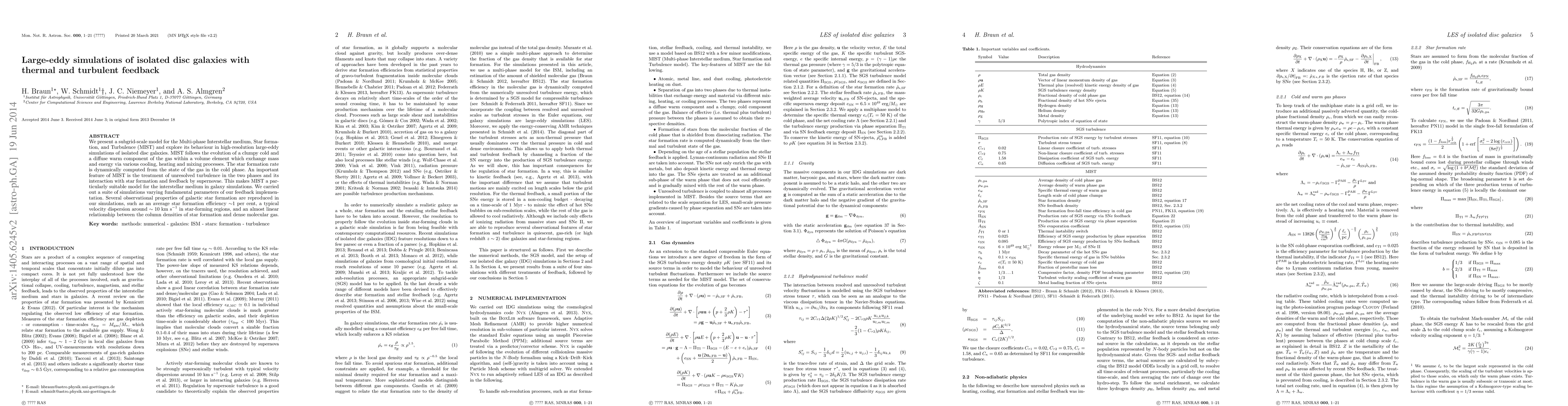 We present a subgrid-scale model for the Multi-phase Interstellar medium, Star formation, and Turbulence (MIST) and explore its behaviour in high-resolution large-eddy simulations of isolated disc galaxies. MIST follows the evolution of a clumpy cold and a diffuse warm component of the gas within a volume element which exchange mass and energy via various cooling, heating and mixing processes. The star formation rate is dynamically computed from the state of the gas in the cold phase. An important feature of MIST is the treatment of unresolved turbulence in the two phases and its interaction with star formation and feedback by supernovae. This makes MIST a particularly suitable model for the interstellar medium in galaxy simulations. We carried out a suite of simulations varying fundamental parameters of our feedback implementation. Several observational properties of galactic star formation are reproduced in our simulations, such as an average star formation efficiency ~1%, a typical velocity dispersion around ~10 km/s in star-forming regions, and an almost linear relationship between the column densities of star formation and dense molecular gas.