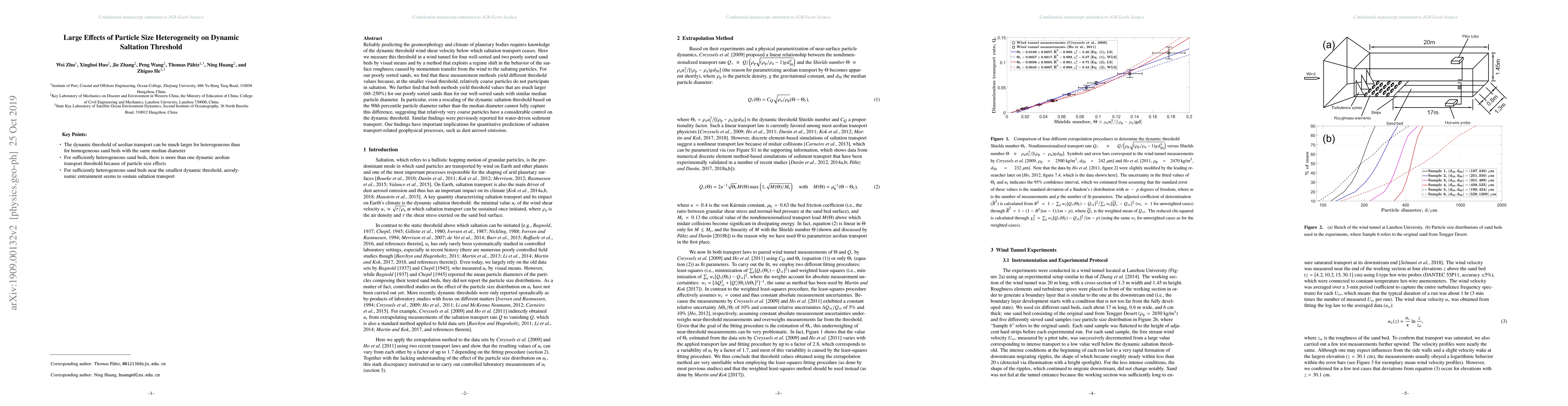 This study investigates the dynamic saltation threshold in sand beds of varying particle size heterogeneity, finding that poorly sorted sands exhibit significantly larger thresholds (60-250%) compared to well-sorted sands, highlighting the critical role of coarse particles in controlling this threshold. These findings are crucial for predicting saltation transport-related geophysical processes.