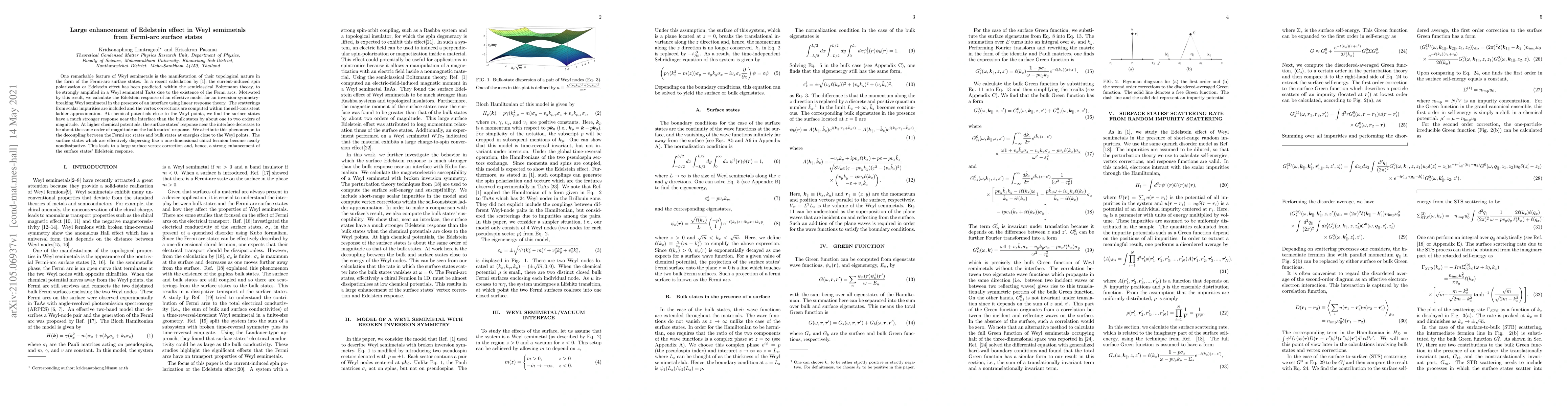This paper investigates the Edelstein effect in Weyl semimetals, finding that Fermi-arc surface states significantly enhance this effect near the Weyl points due to their nearly nondissipative nature, leading to a much stronger response compared to bulk states. The study uses linear response theory and self-consistent ladder approximation to model the interface effects and impurity scatterings.