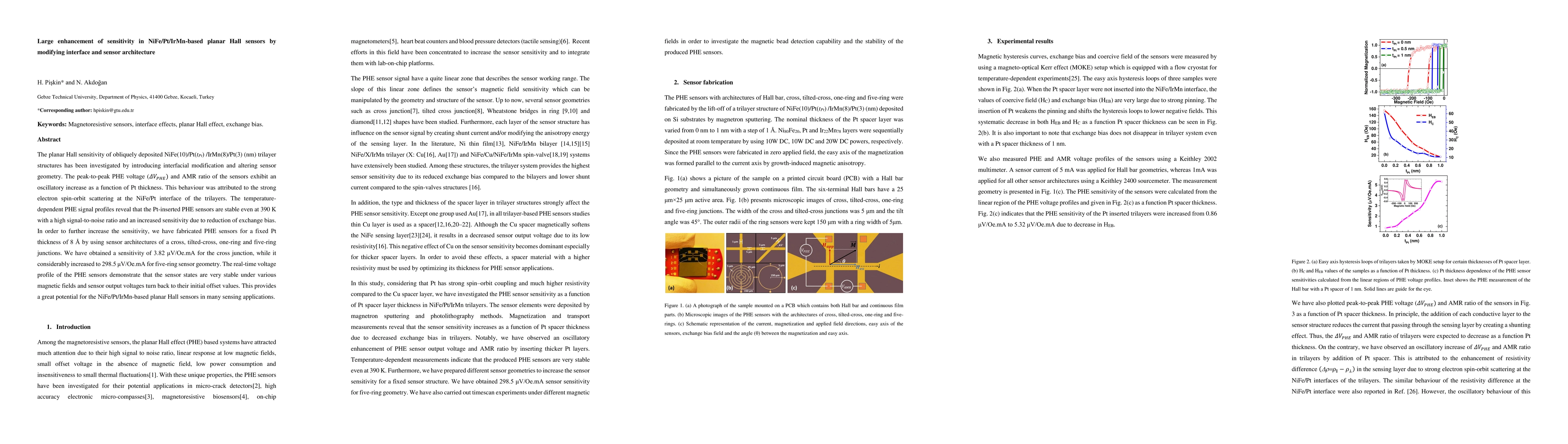 Researchers improved planar Hall sensors by modifying interfaces and sensor architectures, achieving higher sensitivity of 3.82 microvolts/Oe.mA with five-ring junctions.