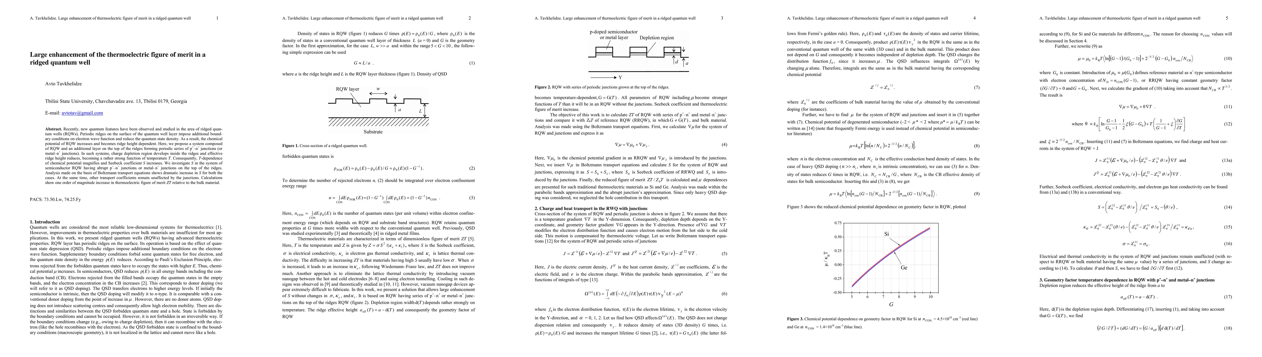 Recently new quantum features were observed and studied in the ridged quantum wells (RQW). Periodic ridges on the surface of the quantum well layer impose additional boundary conditions on electron wave function and reduce quantum state density. As result, chemical potential of RQW increases and becomes the ridge height dependent. Here we propose system comprising of RQW and additional layer on the top of the ridges forming periodic series of p+-n+ junctions (or metal-n+ junctions). In such systems charge depletion region develops inside the ridges and effective ridge height reduces, becoming rather strong function of temperature T. Consequently, T dependence of chemical potential magnifies and Seebeck coefficient S increases. We investigate S in the system of semiconductor RQW having abrupt p+-n+ junctions or metal-n+ junctions on the top of the ridges. Analysis made on the basis of Boltzmann transport equations shows dramatic increase in S for both cases. At the same time other transport coefficients remain unaffected by the junctions. Calculations show one order of magnitude increase in thermoelectric figure of merit ZT relative to the bulk material.