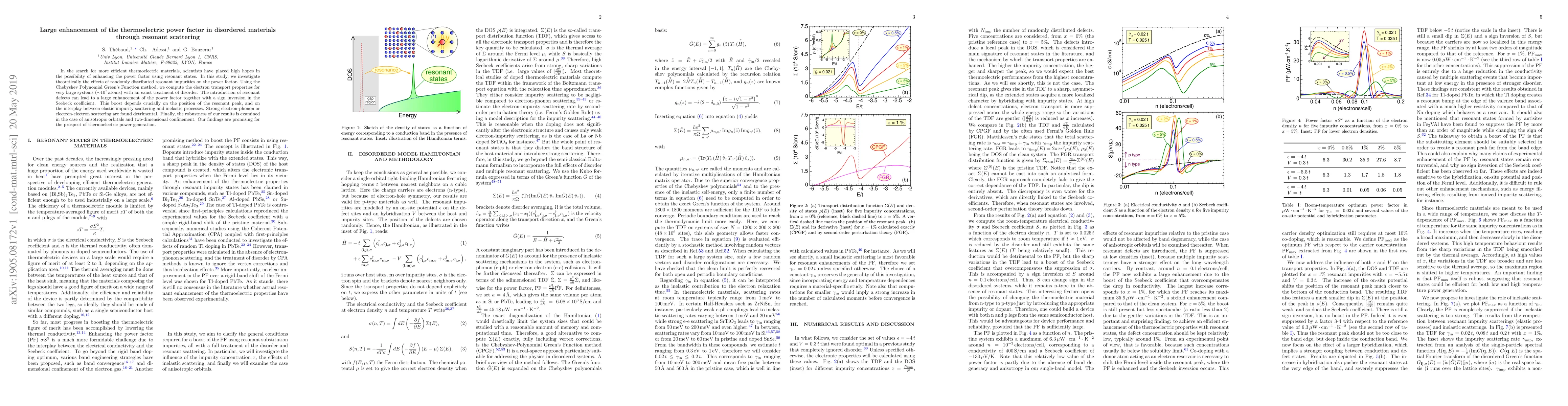This study theoretically explores how resonant impurities in disordered materials can significantly enhance the thermoelectric power factor, using the Chebyshev Polynomial Green's Function method. The results show that resonant scattering can boost power factor and invert the Seebeck coefficient, though strong scattering processes are detrimental.