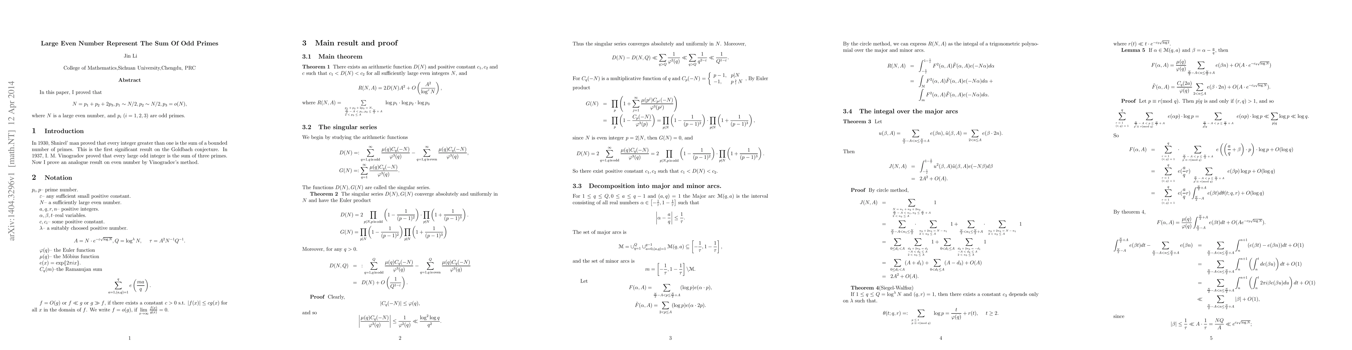 In this paper, I proved that $$N=p_1+p_2+2p_3, p_1\sim N/2, p_2\sim N/2, p_3=o(N),$$ where $N$ is a large even number, and $p_i\ (i=1,2,3)$ are odd primes.