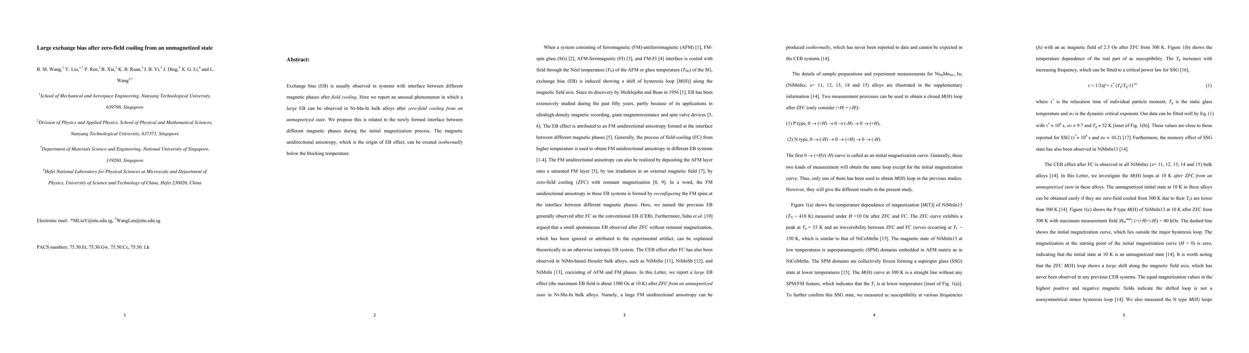 Researchers observe large exchange bias in Ni-Mn-In bulk alloys after zero-field cooling from an unmagnetized state, suggesting a newly formed interface between magnetic phases during initial magnetization.