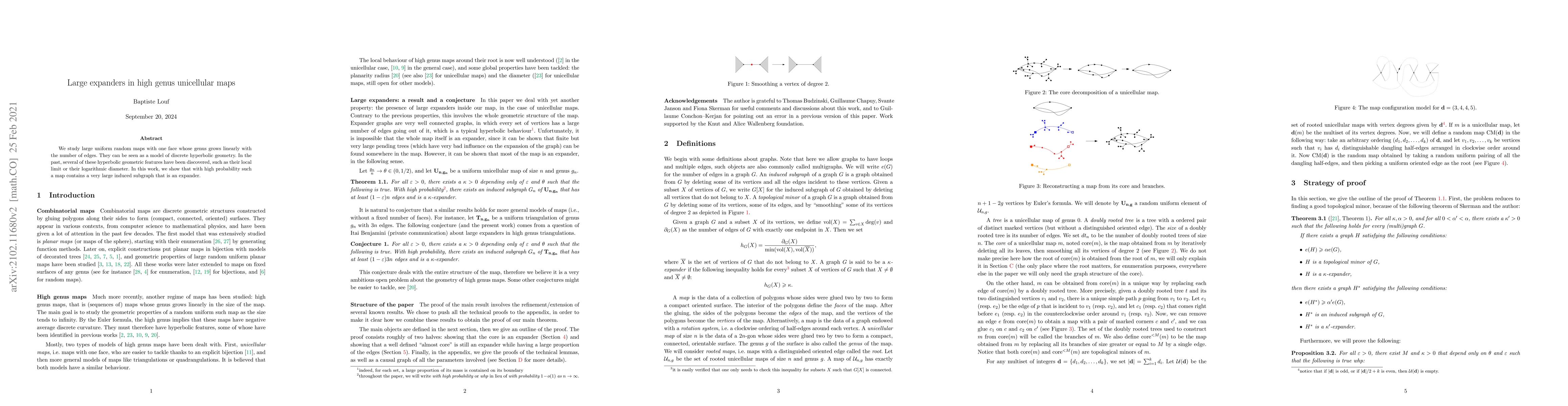 Large random maps with one face exhibit a large induced expander subgraph with high probability, shedding light on discrete hyperbolic geometry. This discovery has implications for understanding the geometric properties of uniform random maps.