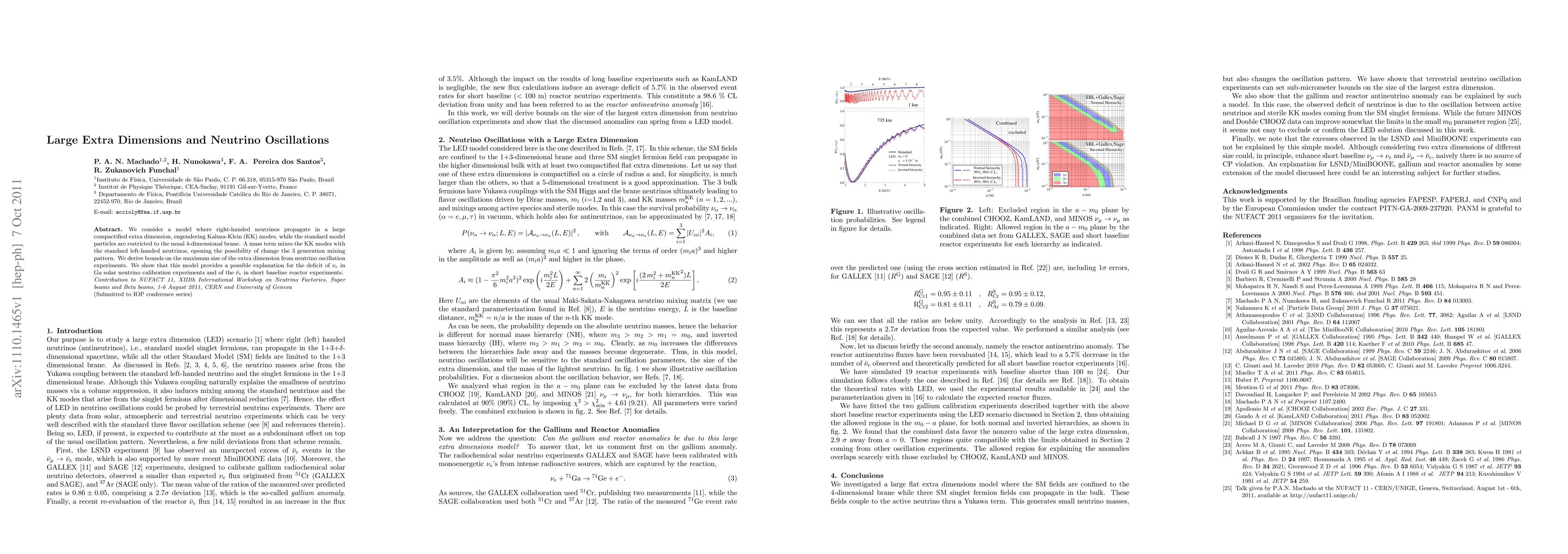 We consider a model where right-handed neutrinos propagate in a large compactified extra dimension, engendering Kaluza-Klein (KK) modes, while the standard model particles are restricted to the usual 4-dimensional brane. A mass term mixes the KK modes with the standard left-handed neutrinos, opening the possibility of change the 3 generation mixing pattern. We derive bounds on the maximum size of the extra dimension from neutrino oscillation experiments. We show that this model provides a possible explanation for the deficit of nu_e in Ga solar neutrino calibration experiments and of the anti-nu_e in short baseline reactor experiments.