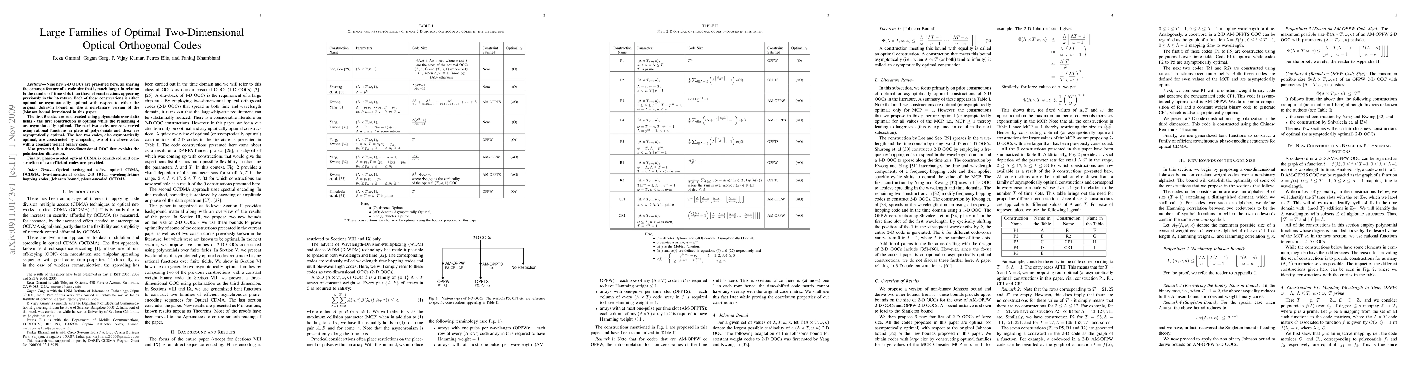 Nine new 2-D OOCs are presented here, all sharing the common feature of a code size that is much larger in relation to the number of time slots than those of constructions appearing previously in the literature. Each of these constructions is either optimal or asymptotically optimal with respect to either the original Johnson bound or else a non-binary version of the Johnson bound introduced in this paper. The first 5 codes are constructed using polynomials over finite fields - the first construction is optimal while the remaining 4 are asymptotically optimal. The next two codes are constructed using rational functions in place of polynomials and these are asymptotically optimal. The last two codes, also asymptotically optimal, are constructed by composing two of the above codes with a constant weight binary code. Also presented, is a three-dimensional OOC that exploits the polarization dimension. Finally, phase-encoded optical CDMA is considered and construction of two efficient codes are provided.