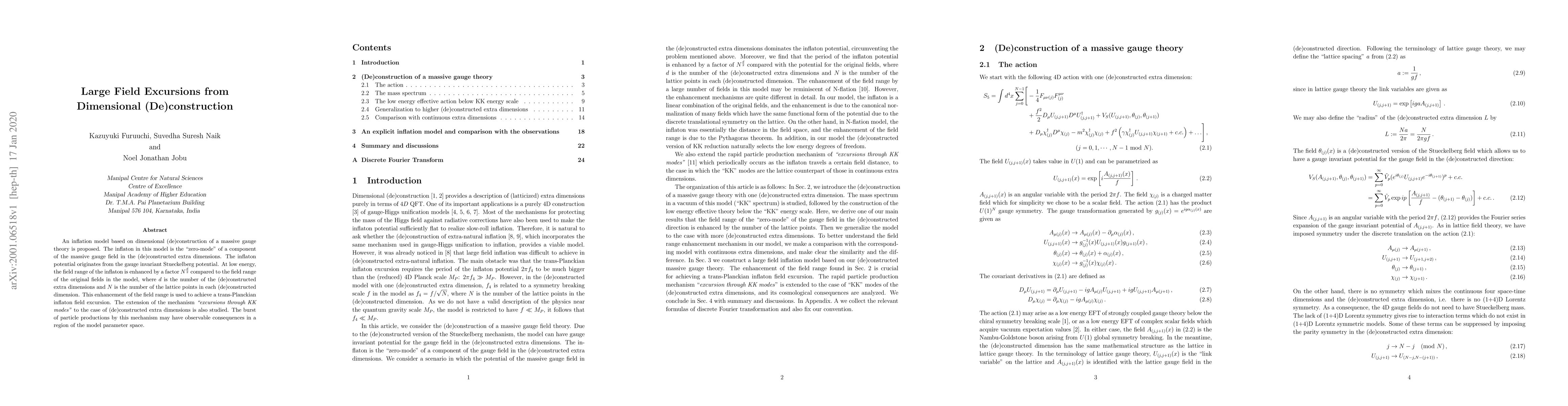 This paper proposes an inflation model using dimensional (de)construction of a massive gauge theory, where the inflaton is derived from the "zero-mode" of a gauge field. The inflaton's potential enhances its field range, enabling a trans-Planckian field excursion, and explores potential observable consequences of particle production from this mechanism.