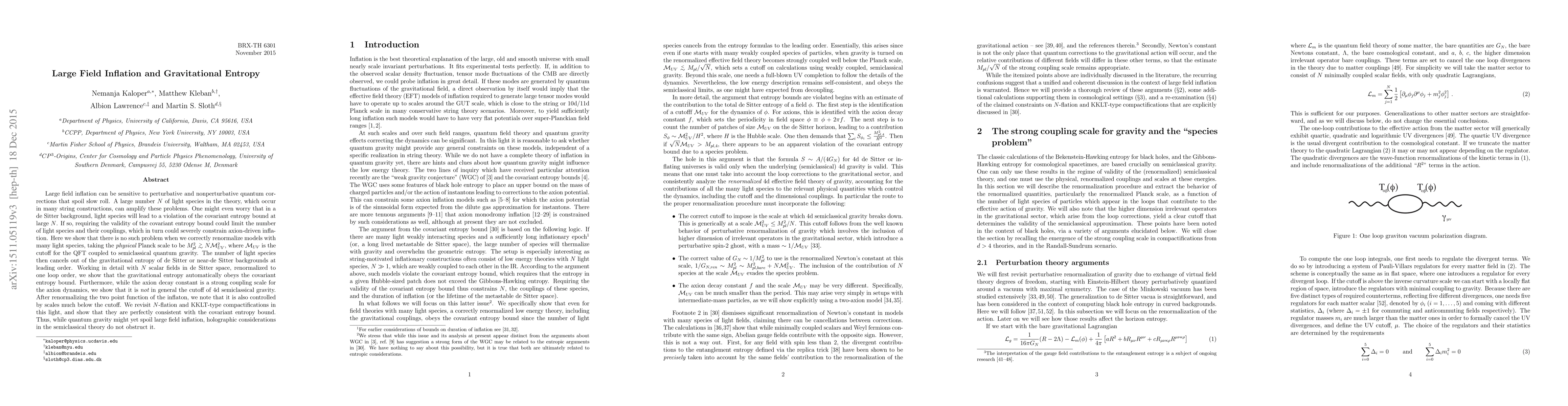 Large field inflation can be sensitive to perturbative and nonperturbative quantum corrections that spoil slow roll. A large number $N$ of light species in the theory, which occur in many string constructions, can amplify these problems. One might even worry that in a de Sitter background, light species will lead to a violation of the covariant entropy bound at large $N$. If so, requiring the validity of the covariant entropy bound could limit the number of light species and their couplings, which in turn could severely constrain axion-driven inflation. Here we show that there is no such problem when we correctly renormalize models with many light species, taking the {\it physical} Planck scale to be $M^2_{pl} \gtrsim N {\cal M}_{UV}^2$, where ${\cal M}_{UV}$ is the cutoff for the QFT coupled to semiclassical quantum gravity. The number of light species then cancels out of the gravitational entropy of de Sitter or near-de Sitter backgrounds at leading order. Working in detail with $N$ scalar fields in de Sitter space, renormalized to one loop order, we show that the gravitational entropy automatically obeys the covariant entropy bound. Furthermore, while the axion decay constant is a strong coupling scale for the axion dynamics, we show that it is {\it not} in general the cutoff of 4d semiclassical gravity. After renormalizing the two point function of the inflaton, we note that it is also controlled by scales much below the cutoff. We revisit $N$-flation and KKLT-type compactifications in this light, and show that they are perfectly consistent with the covariant entropy bound. Thus, while quantum gravity might yet spoil large field inflation, holographic considerations in the semiclassical theory do not obstruct it.