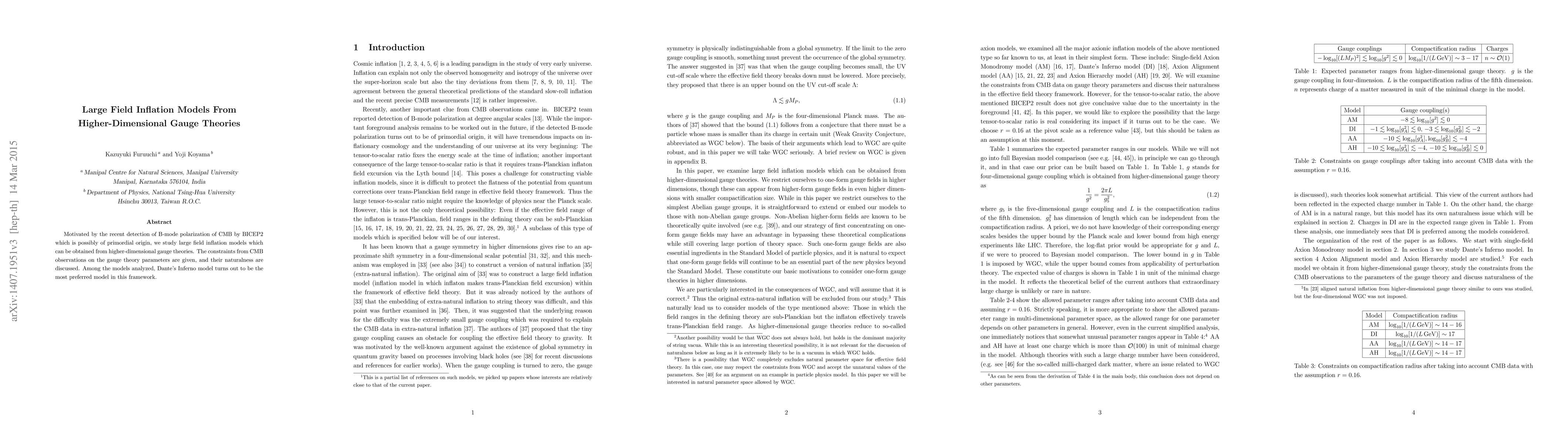 Motivated by the recent detection of B-mode polarization of CMB by BICEP2 which is possibly of primordial origin, we study large field inflation models which can be obtained from higher-dimensional gauge theories. The constraints from CMB observations on the gauge theory parameters are given, and their naturalness are discussed. Among the models analyzed, Dante's Inferno model turns out to be the most preferred model in this framework.