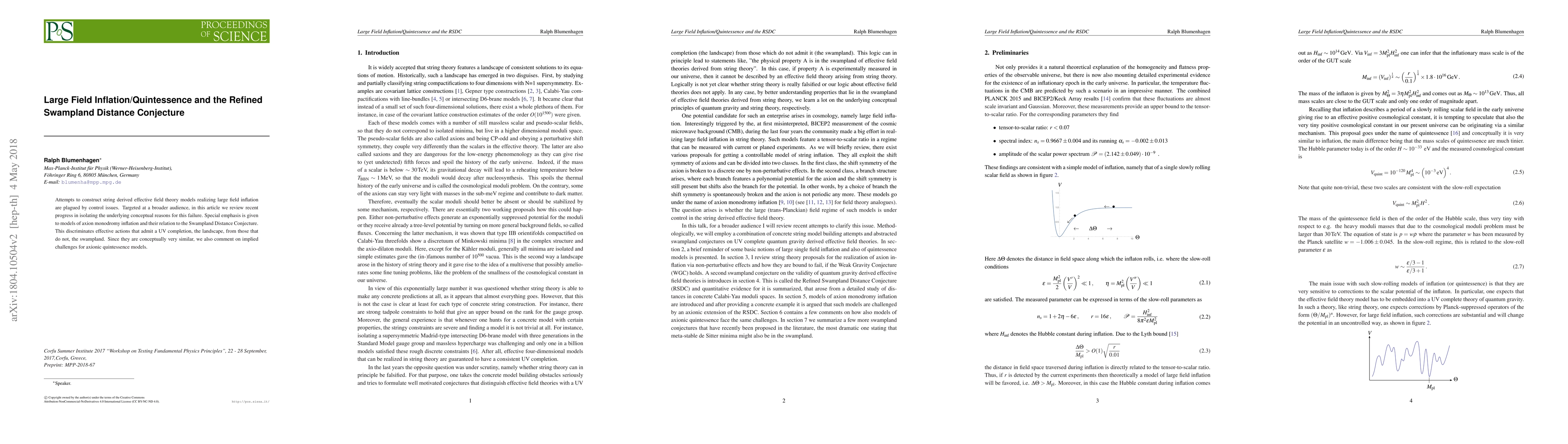 Attempts to construct string derived effective field theory models realizing large field inflation are plagued by control issues. Targeted at a broader audience, in this article we review recent progress in isolating the underlying conceptual reasons for this failure. Special emphasis is given to models of axion monodromy inflation and their relation to the Swampland Distance Conjecture. This discriminates effective actions that admit a UV completion, the landscape, from those that do not, the swampland. Since they are conceptually very similar, we also comment on implied challenges for axionic quintessence models.