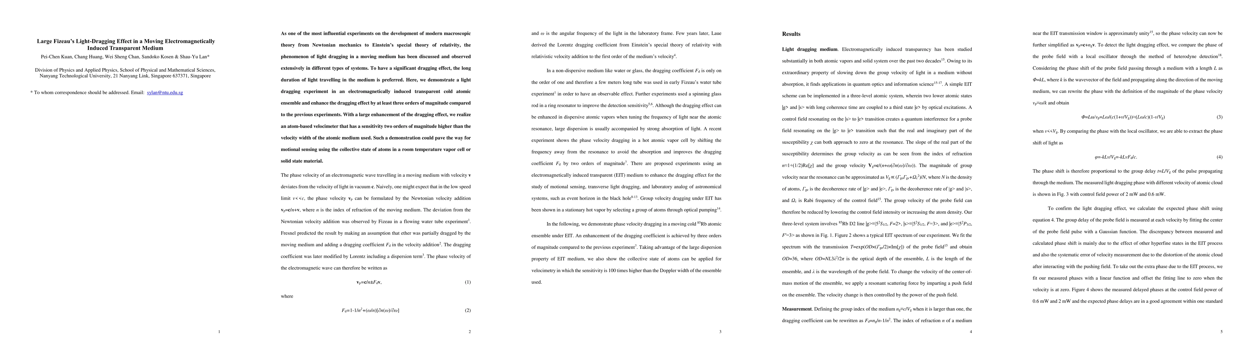 This paper demonstrates a significantly enhanced Fizeau's light-dragging effect in a moving electromagnetically induced transparent medium using cold atomic ensembles, achieving a three-order-of-magnitude improvement over previous experiments. The enhanced effect enables the development of an atom-based velocimeter with high sensitivity, potentially facilitating motional sensing in room temperature vapour cells or solid-state materials.