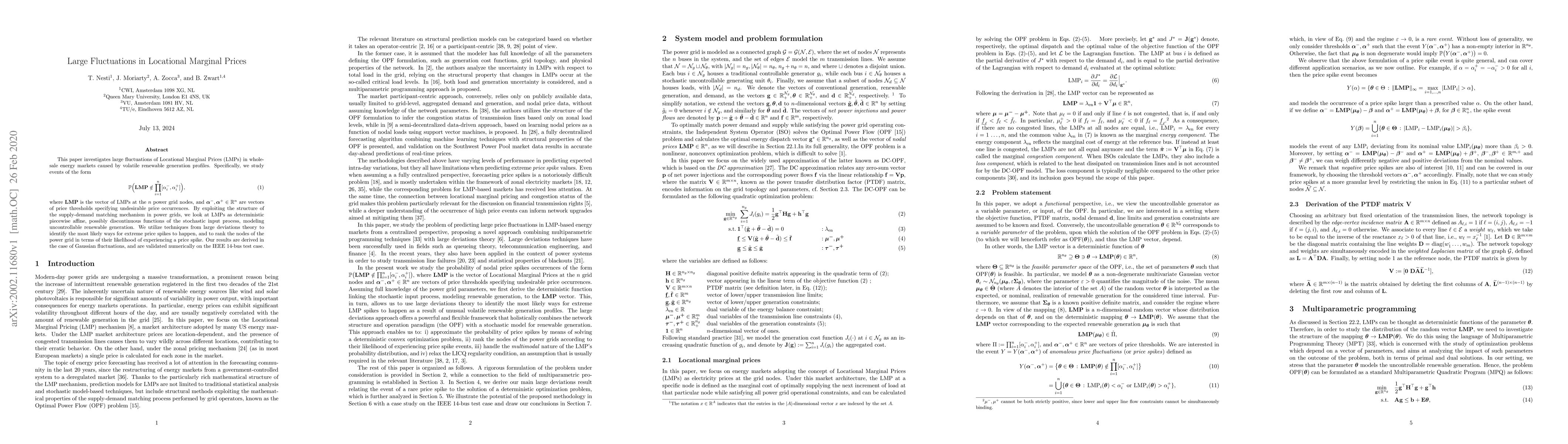This paper examines large fluctuations in Locational Marginal Prices (LMPs) in energy markets due to volatile renewable generation, using techniques from large deviations theory to model and analyze extreme price spikes and rank power grid nodes by their likelihood of experiencing such spikes. Results are validated numerically on the IEEE 14-bus test case.