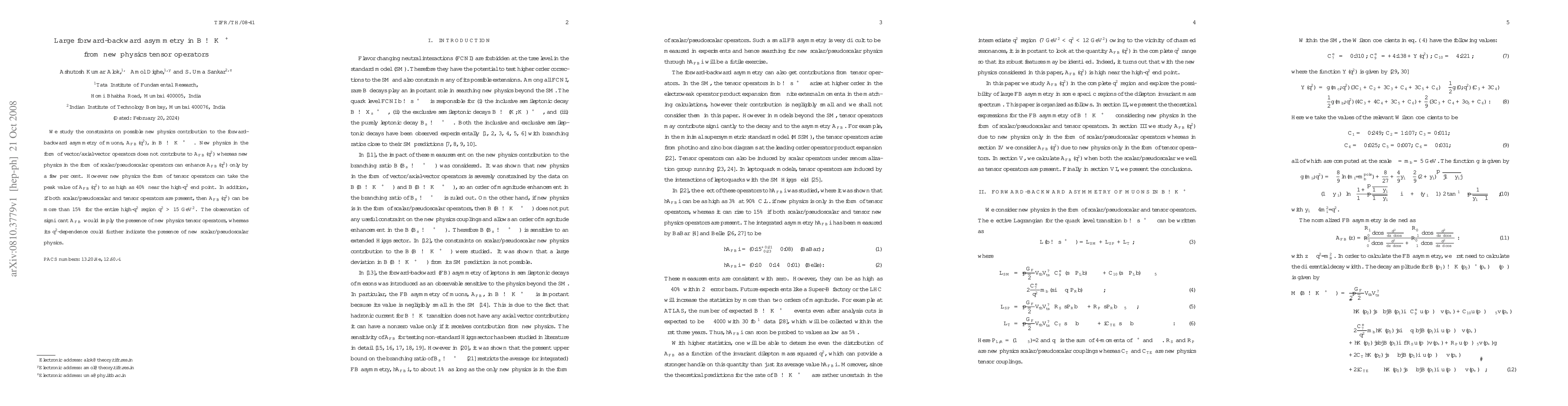 We study the constraints on possible new physics contribution to the forward-backward asymmetry of muons, A_{FB}(q^2), in B --> K mu+ mu-. New physics in the form of vector/axial-vector operators does not contribute to A_{FB}(q^2) whereas new physics in the form of scalar/pseudoscalar operators can enhance A_{FB}(q^2) only by a few per cent. However new physics the form of tensor operators can take the peak value of A_{FB}(q^2) to as high as 40% near the high-q^2 end point. In addition, if both scalar/pseudoscalar and tensor operators are present, then A_{FB}(q^2) can be more than 15% for the entire high-q^2 region q^2 > 15 GeV^2. The observation of significant A_{FB} would imply the presence of new physics tensor operators, whereas its q^2 dependence could further indicate the presence of new scalar/pseudoscalar physics.
