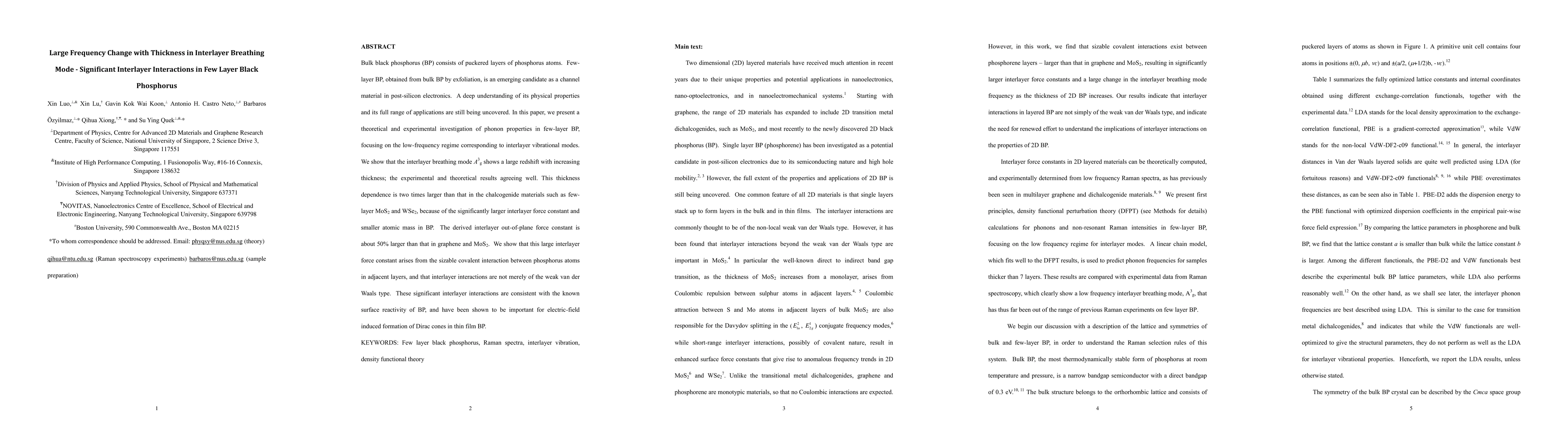 This study investigates the interlayer breathing mode in few-layer black phosphorus (BP), revealing a significant redshift with increasing thickness due to large interlayer interactions, more pronounced than in chalcogenide materials. The interlayer force constant is about 50% larger than in graphene and MoS2, attributed to strong covalent interactions, indicating robust interlayer bonding beyond weak van der Waals forces.