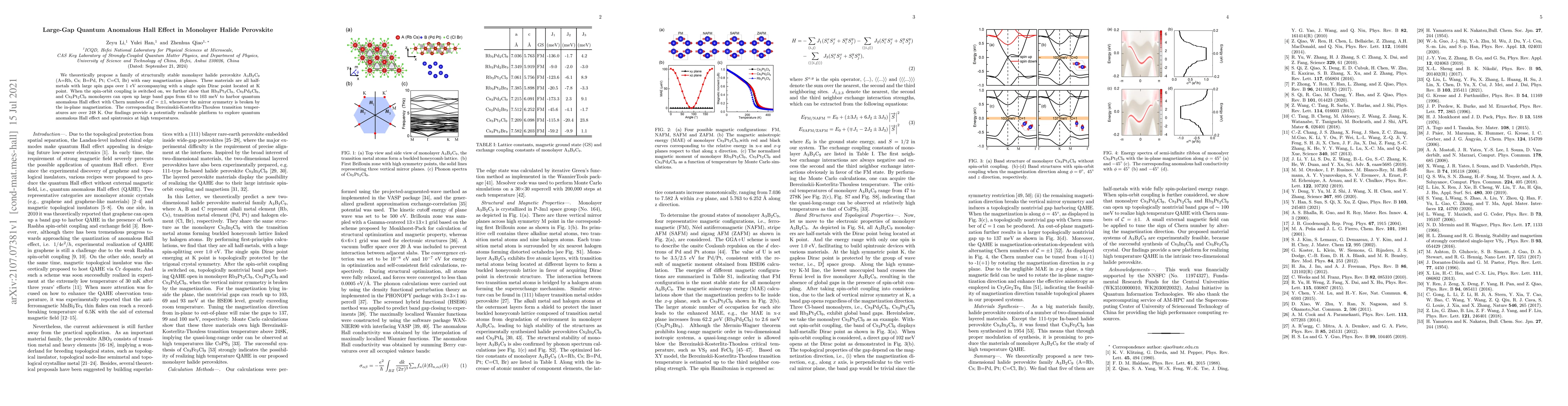 Researchers propose a family of monolayer halide perovskites with large spin gaps that can exhibit the quantum anomalous Hall effect at high temperatures, opening up new possibilities for spintronics research.