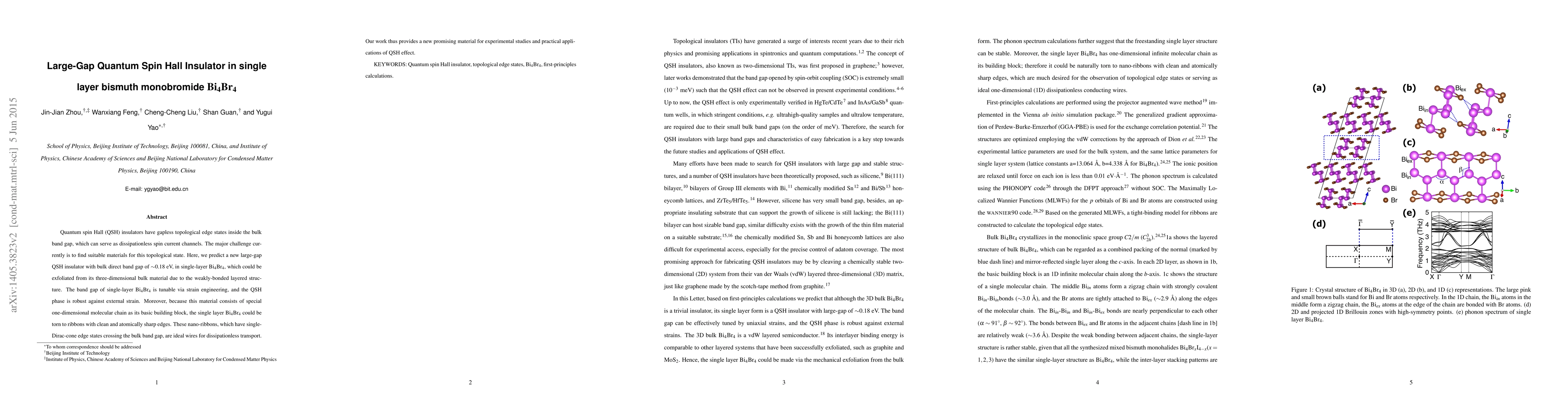 Quantum spin Hall (QSH) insulators have gapless topological edge states inside the bulk band gap, which can serve as dissipationless spin current channels protected by the time-reversal symmetry. The major challenge currently is to find suitable materials for this topological state. Here, we predict a new large-gap QSH insulator with bulk direct band gap of $\sim$0.18 eV, in single-layer Bi$_{4}$Br$_{4}$, which could be exfoliated from its three-dimensional bulk material due to the weakly-bonded layered structure. The band gap of single-layer Bi$_{4}$Br$_{4}$ is tunable via strain engineering, and the QSH phase is robust against external strain. In particular, because this material consists of special one-dimensional molecular chain as its basic building block, the single layer Bi$_{4}$Br$_{4}$ could be easily torn to ribbons with clean and atomically sharp edges, which are much desired for the observation and application of topological edge states. Our work thus provides a new promising material for experimental studies and practical applications of QSH effect.
