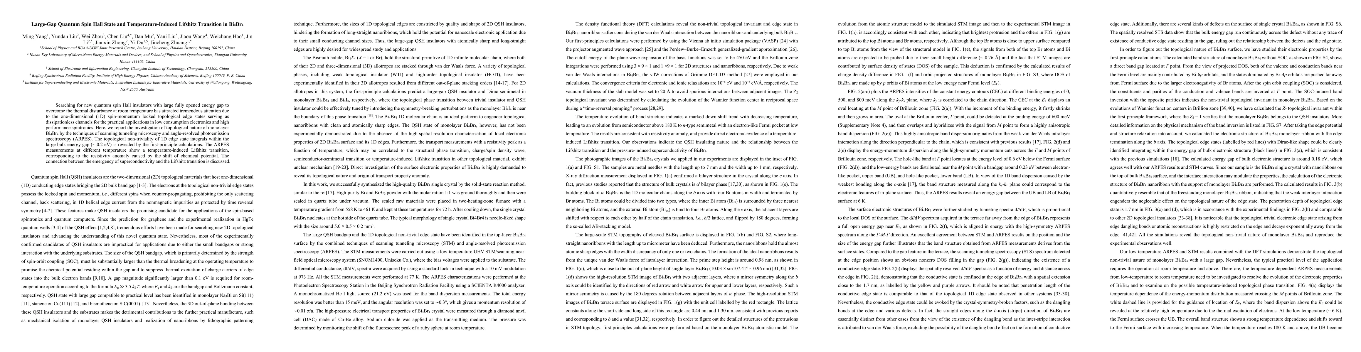 This paper investigates the topological nature of monolayer Bi4Br4, revealing a large-gap quantum spin Hall state with one-dimensional spin-momentum locked edge states. Temperature-induced Lifshitz transition and its connection to superconductivity are observed via ARPES, highlighting potential for low-power electronics and spintronics.