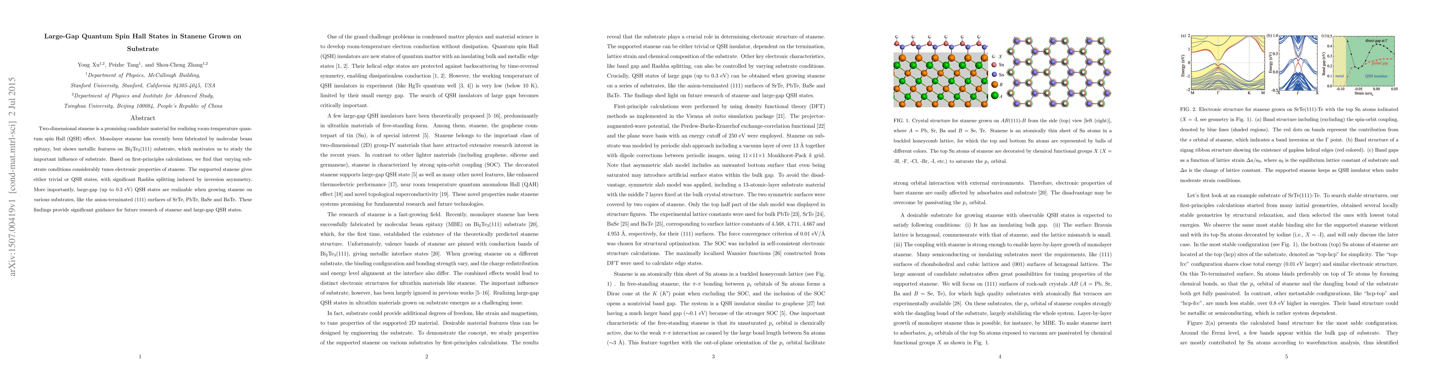 The study investigates how substrate conditions affect the electronic properties of stanene, revealing that certain substrates can induce large-gap quantum spin Hall states. Supported stanene grown on specific substrates like SrTe, PbTe, BaSe, and BaTe exhibits significant Rashba splitting, enabling the realization of up to 0.3 eV gap quantum spin Hall states, providing valuable insights for future research on stanene.