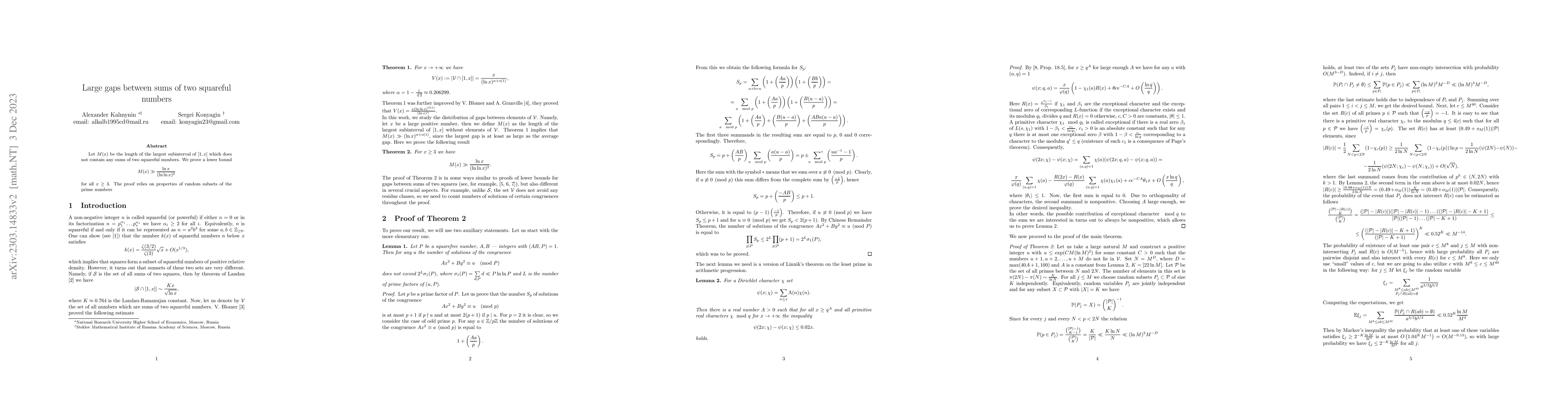 This paper establishes a lower bound for the largest subinterval in $[1,x]$ devoid of sums of two squareful numbers, proving that $M(x)\gg \frac{\ln x}{(\ln\ln x)^2}$ for $x\geq 3$, using properties of random subsets of prime numbers in the proof.