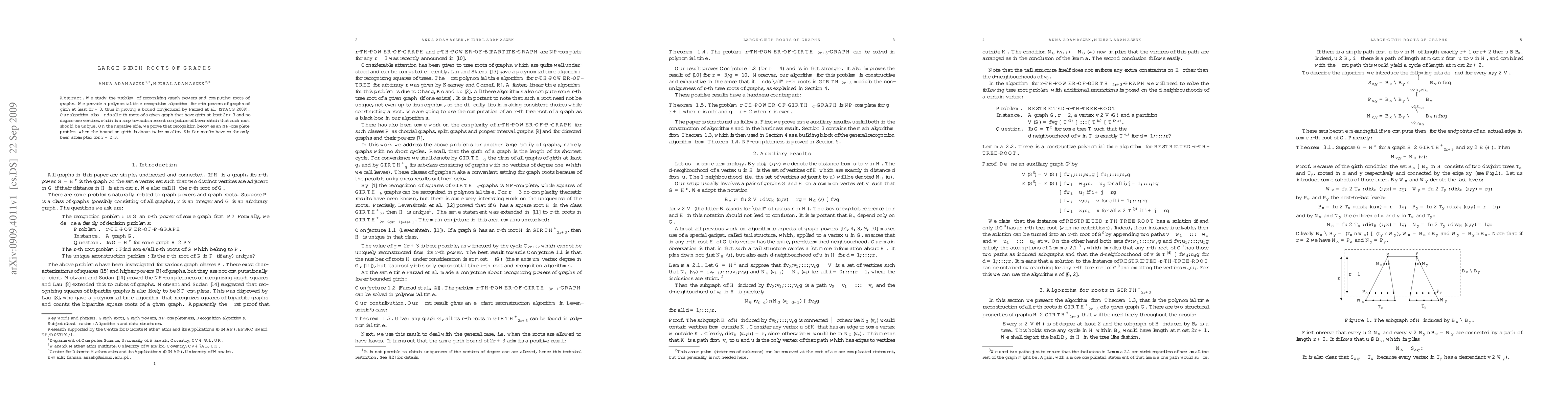 Researchers developed a polynomial time algorithm to recognize graph powers with a minimum girth of 2r+3 and found all such roots, improving a conjecture on uniqueness.