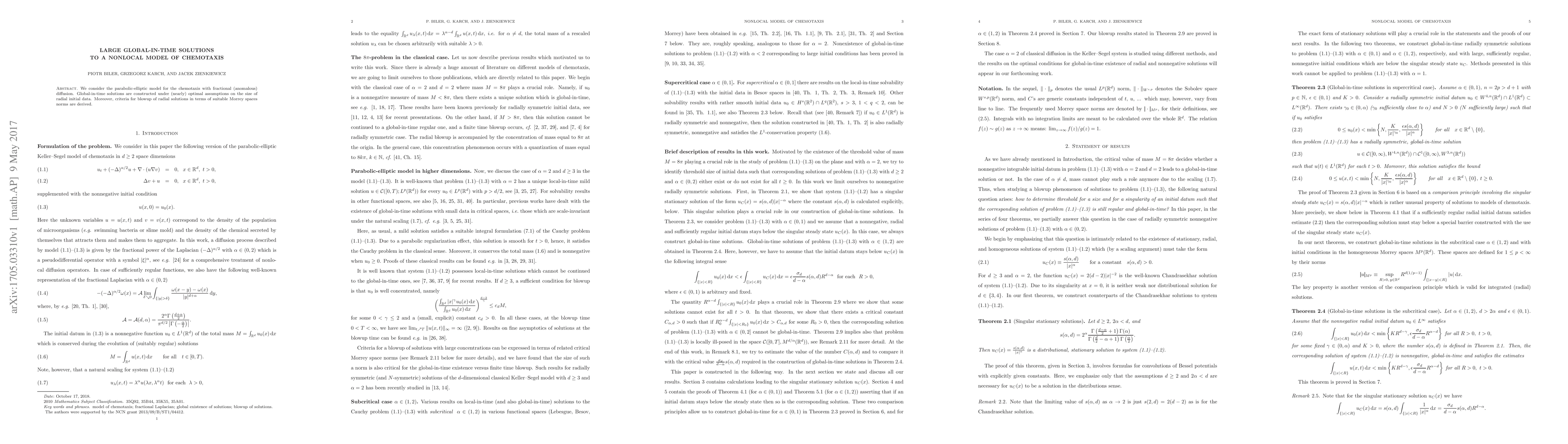 We consider the parabolic-elliptic model for the chemotaxis with fractional (anomalous) diffusion. Global-in-time solutions are constructed under (nearly) optimal assumptions on the size of radial initial data. Moreover, criteria for blowup of radial solutions in terms of suitable Morrey spaces norms are derived.