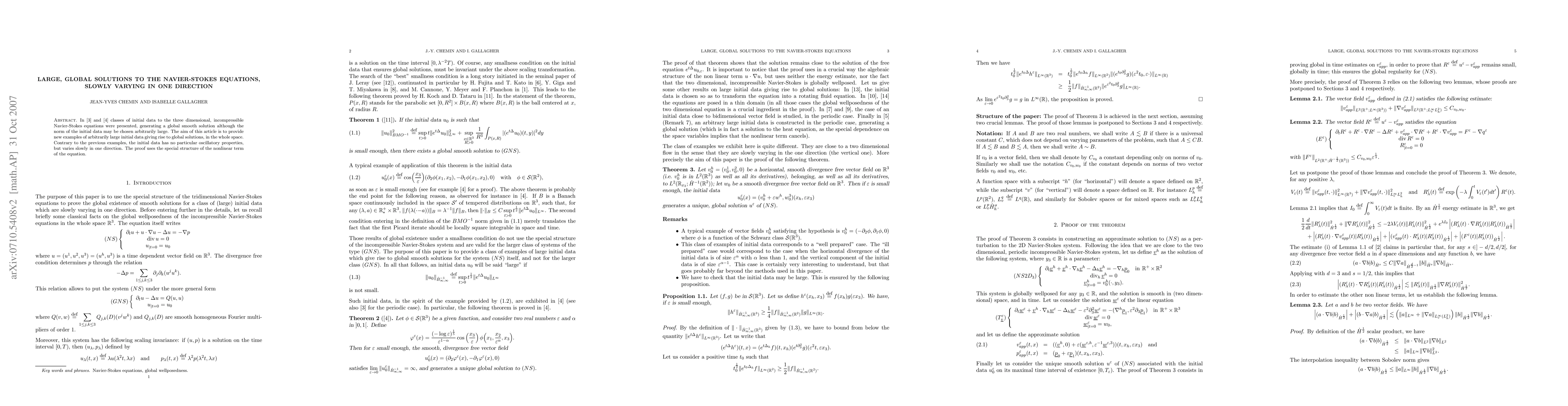 Researchers find globally smooth solutions to the Navier-Stokes equations for arbitrarily large initial data that slowly varies in one direction, improving previous examples.