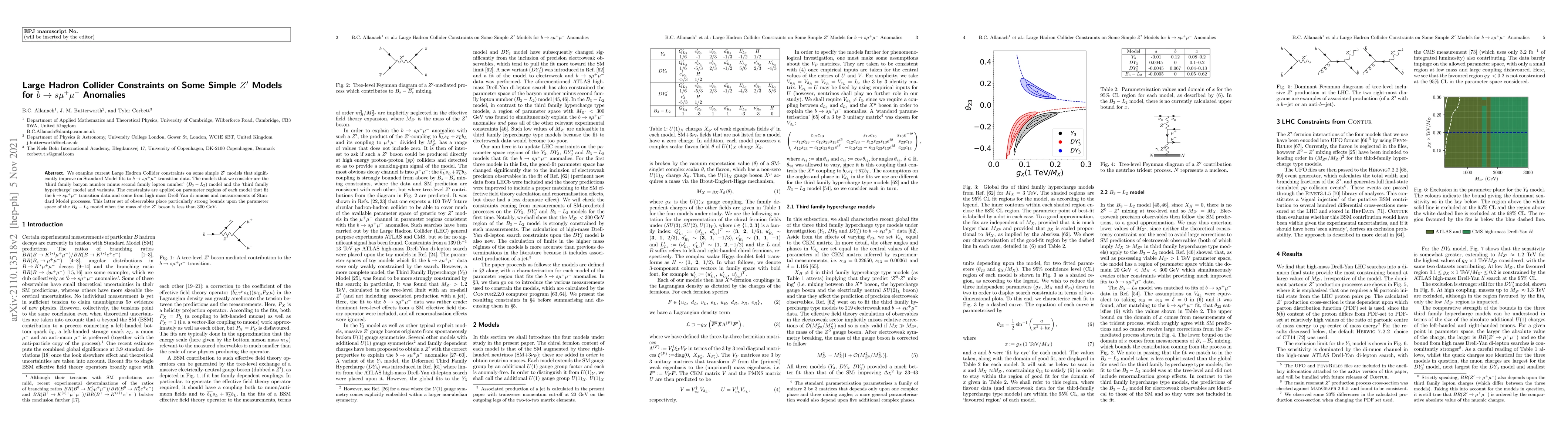 Researchers analyzed Large Hadron Collider data to constrain simple Z' models that improve on Standard Model fits for b-to-s-mu+mu- transitions. The constraints show strong bounds on certain models, particularly when the Z' boson mass is less than 300 GeV.