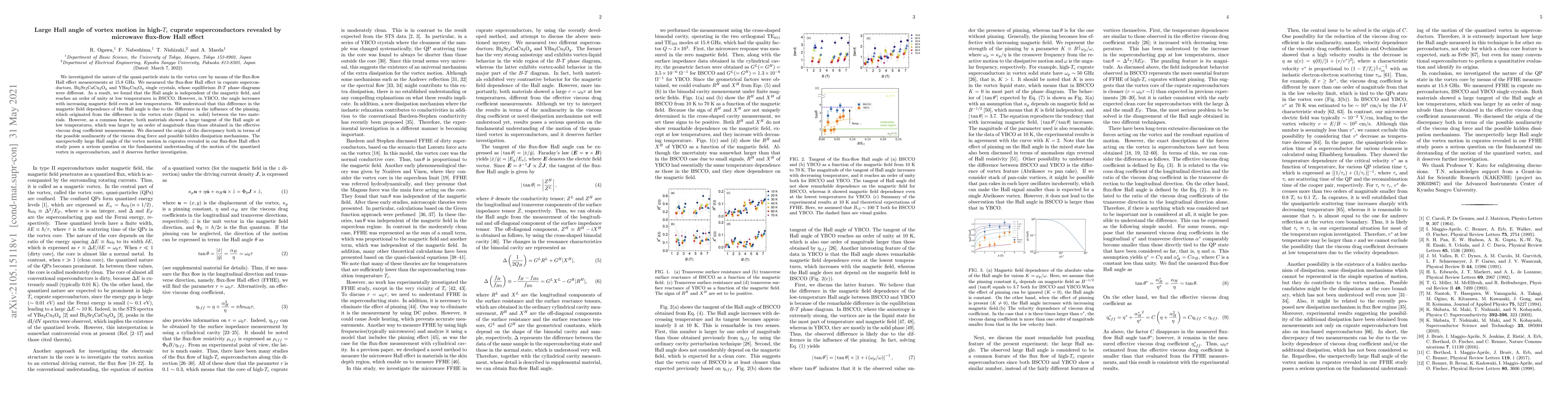 Researchers found that superconductors Bi$_{2}$Sr$_{2}$CaCu$_{2}$O$_{y}$ and YBa$_{2}$Cu$_{3}$O$_{y}$ exhibit large Hall angles of vortex motion, exceeding order of unity at low temperatures, with significant implications for understanding quantized vortex behavior in superconductors.