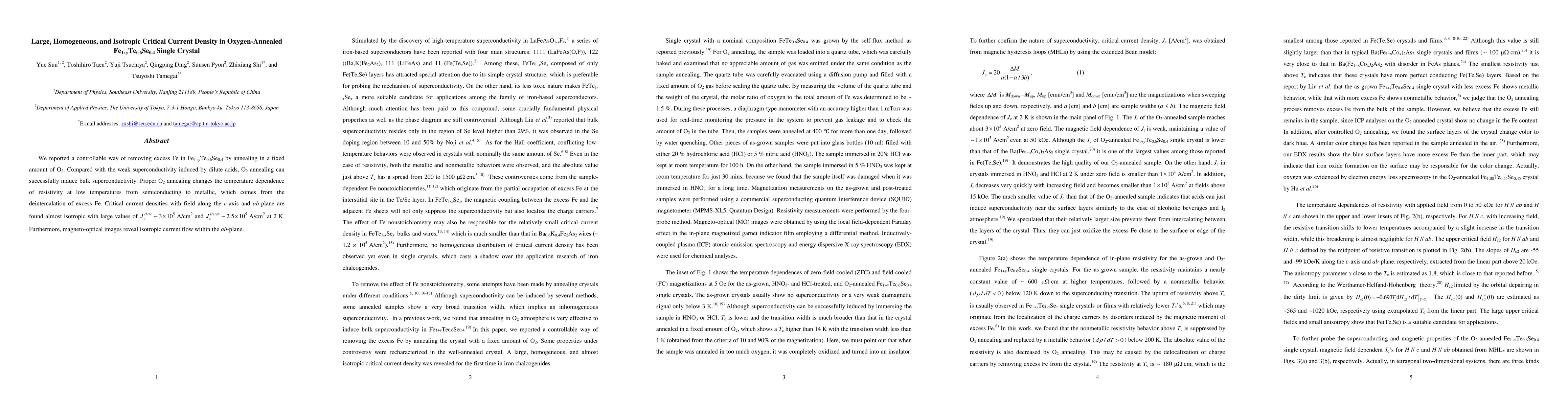 Researchers developed a method to induce bulk superconductivity in Fe1+yTe0.6Se0.4 single crystals by annealing in oxygen, resulting in large, homogeneous, and isotropic critical current densities of 3*10^5 A/cm2 and 2.5*10^5 A/cm2 at 2K.