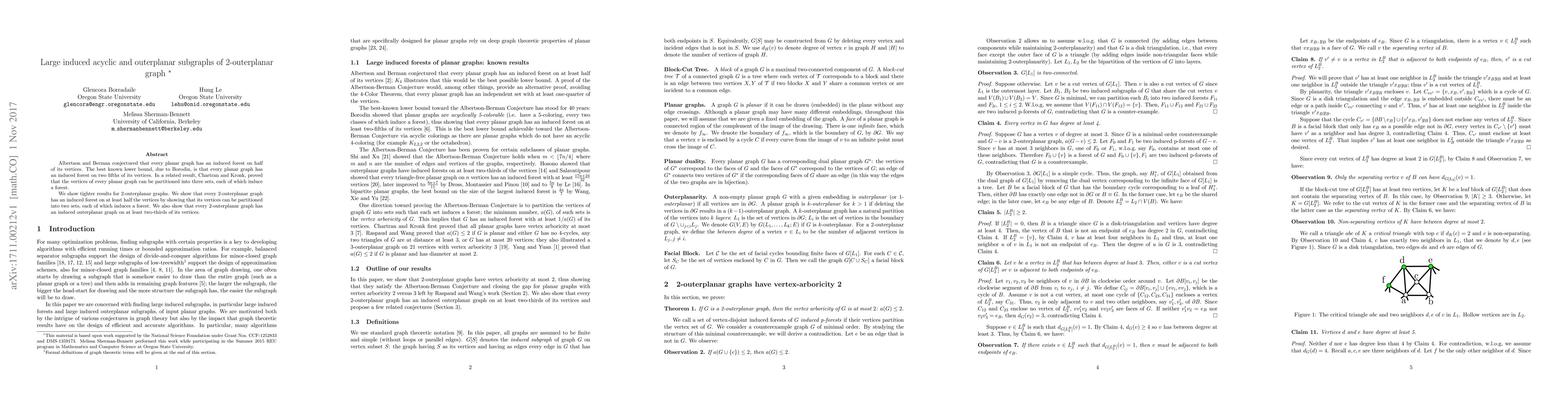 This paper proves tighter results for 2-outerplanar graphs, showing that they contain an induced forest on at least half of their vertices and an induced outerplanar subgraph on at least two-thirds of their vertices. These findings extend and strengthen earlier conjectures about planar graphs.