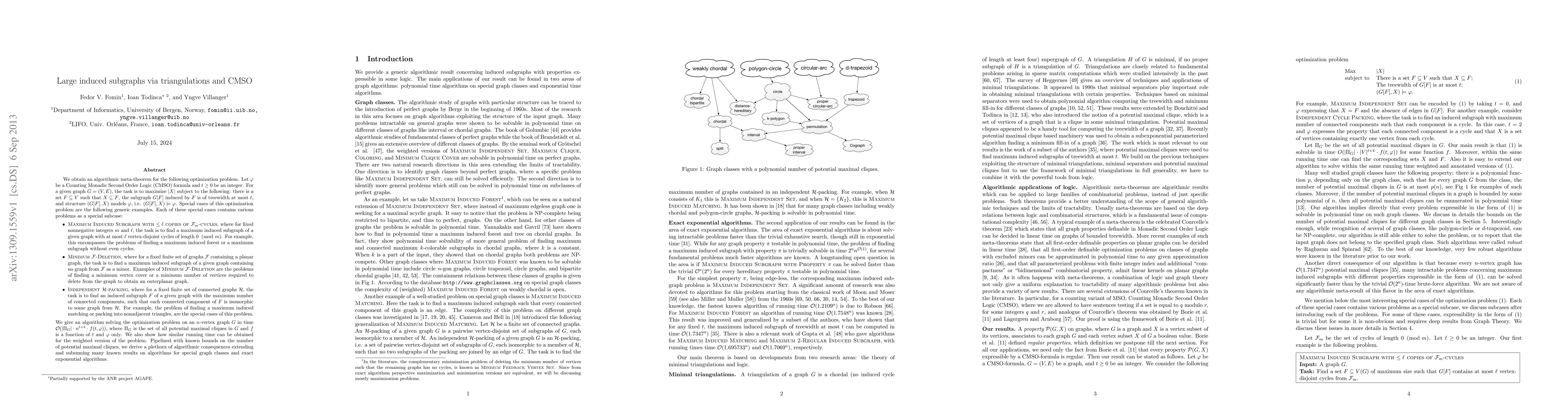 We obtain an algorithmic meta-theorem for the following optimization problem. Let \phi\ be a Counting Monadic Second Order Logic (CMSO) formula and t be an integer. For a given graph G, the task is to maximize |X| subject to the following: there is a set of vertices F of G, containing X, such that the subgraph G[F] induced by F is of treewidth at most t, and structure (G[F],X) models \phi. Some special cases of this optimization problem are the following generic examples. Each of these cases contains various problems as a special subcase: 1) "Maximum induced subgraph with at most l copies of cycles of length 0 modulo m", where for fixed nonnegative integers m and l, the task is to find a maximum induced subgraph of a given graph with at most l vertex-disjoint cycles of length 0 modulo m. 2) "Minimum \Gamma-deletion", where for a fixed finite set of graphs \Gamma\ containing a planar graph, the task is to find a maximum induced subgraph of a given graph containing no graph from \Gamma\ as a minor. 3) "Independent \Pi-packing", where for a fixed finite set of connected graphs \Pi, the task is to find an induced subgraph G[F] of a given graph G with the maximum number of connected components, such that each connected component of G[F] is isomorphic to some graph from \Pi. We give an algorithm solving the optimization problem on an n-vertex graph G in time O(#pmc n^{t+4} f(t,\phi)), where #pmc is the number of all potential maximal cliques in G and f is a function depending of t and \phi\ only. We also show how a similar running time can be obtained for the weighted version of the problem. Pipelined with known bounds on the number of potential maximal cliques, we deduce that our optimization problem can be solved in time O(1.7347^n) for arbitrary graphs, and in polynomial time for graph classes with polynomial number of minimal separators.