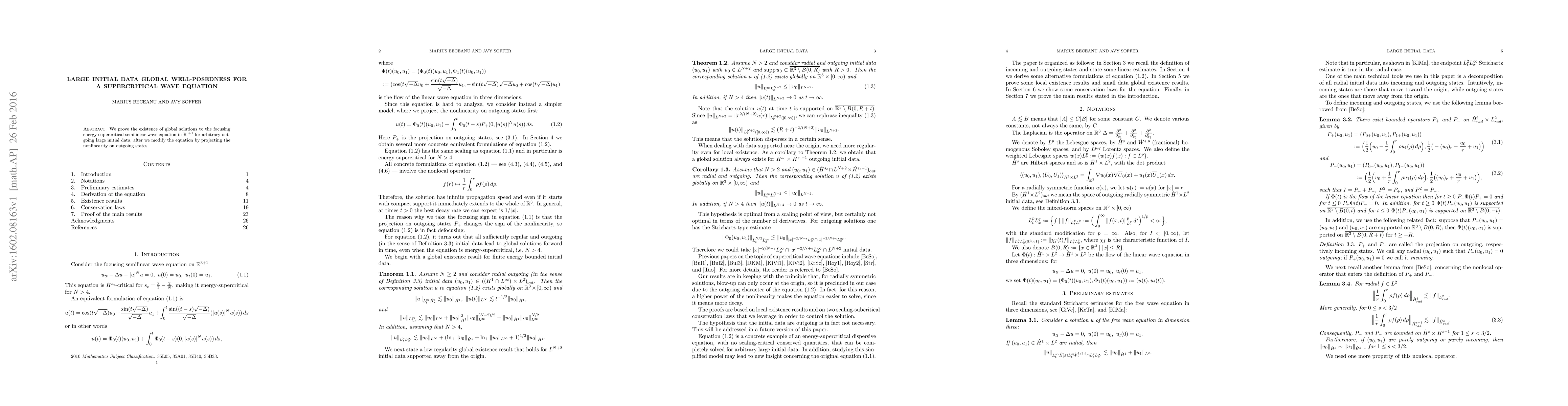 Summary: This paper establishes global well-posedness for the energy-supercritical semilinear wave equation in higher dimensions by projecting the nonlinearity onto outgoing states, ensuring solutions exist for large initial data. The method adapts the equation to handle supercritical growth while maintaining global solutions.
