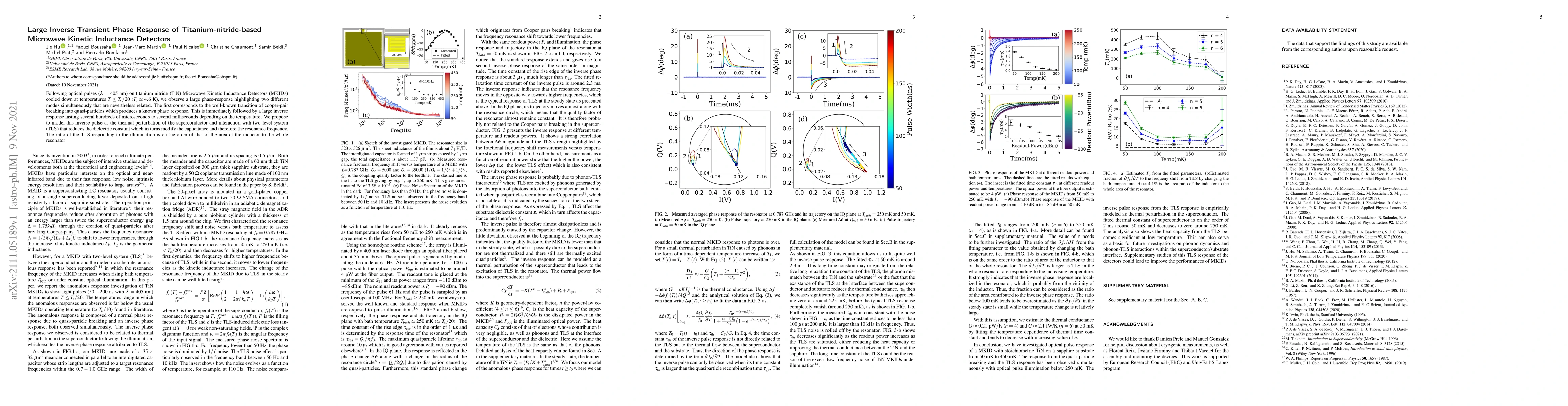 This paper investigates the phase response of titanium-nitride-based Microwave Kinetic Inductance Detectors (MKIDs) following optical pulses, revealing a large inverse transient phase response. The researchers propose that this inverse response is due to thermal perturbation and interaction with two-level systems (TLS) affecting the dielectric constant and resonance frequency.