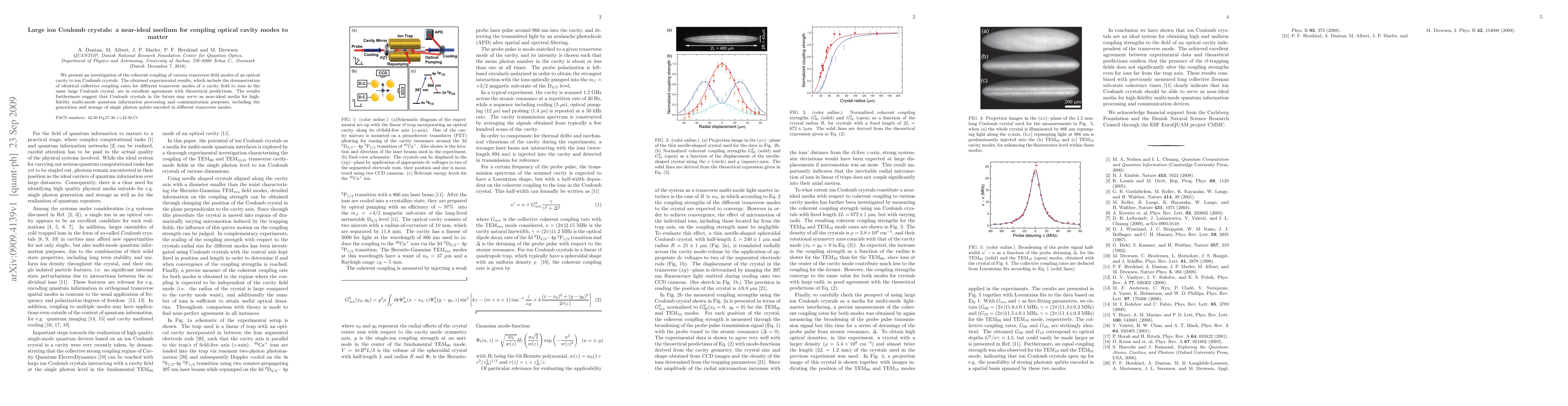 This paper investigates the coupling of optical cavity modes to ion Coulomb crystals, demonstrating identical collective coupling rates across different cavity modes, which aligns with theoretical predictions. The findings suggest that large ion Coulomb crystals could serve as near-ideal media for high-fidelity multi-mode quantum information processing and communication.