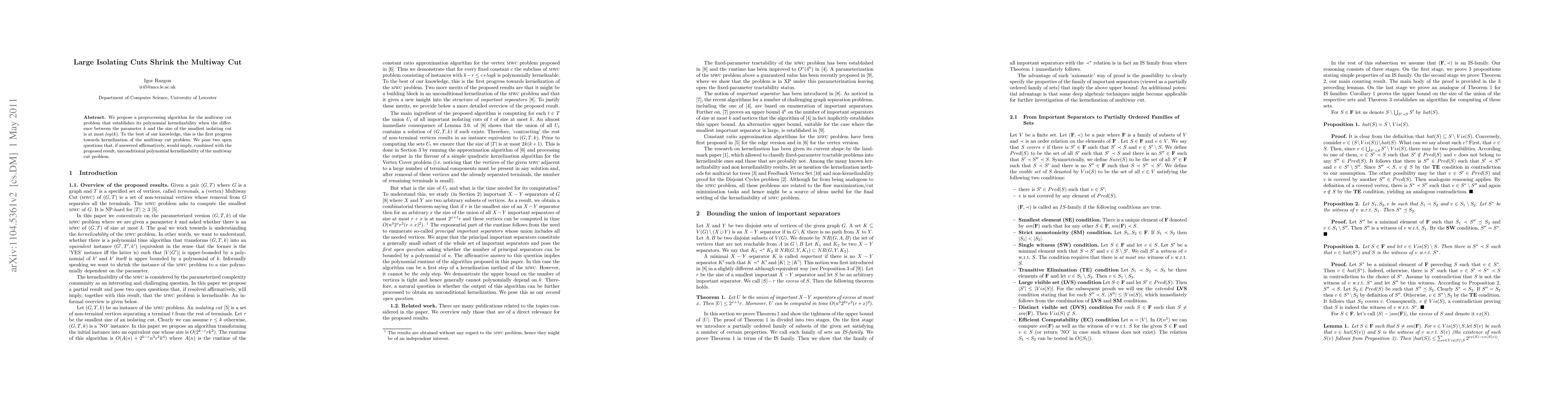 The paper presents a preprocessing algorithm that proves polynomial kernelizability for the multiway cut problem under certain conditions, marking the first progress in this direction. Further research is needed to fully establish the unconditional polynomial kernelizability of the multiway cut problem.