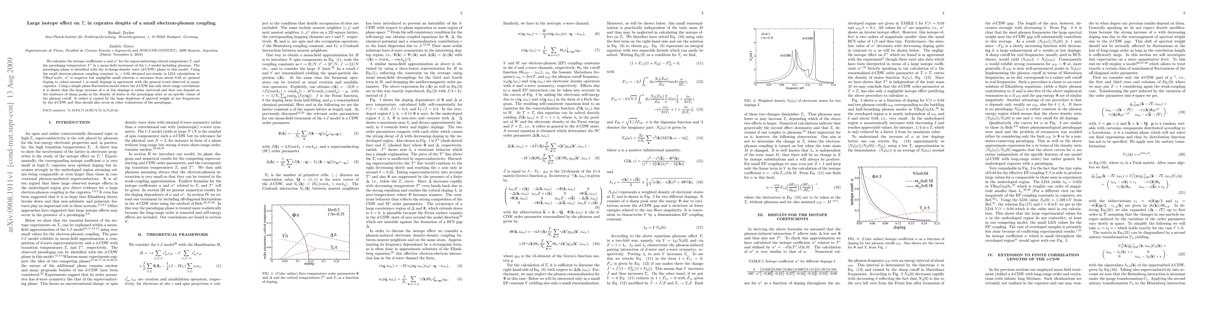 This paper investigates the large isotope effect on the superconducting critical temperature ($T_c$) in cuprates despite a small electron-phonon coupling, finding that $\alpha$, the isotope coefficient for $T_c$, increases significantly at low dopings due to the $d$-charge-density wave phase, independent of specific pseudogap state characteristics.