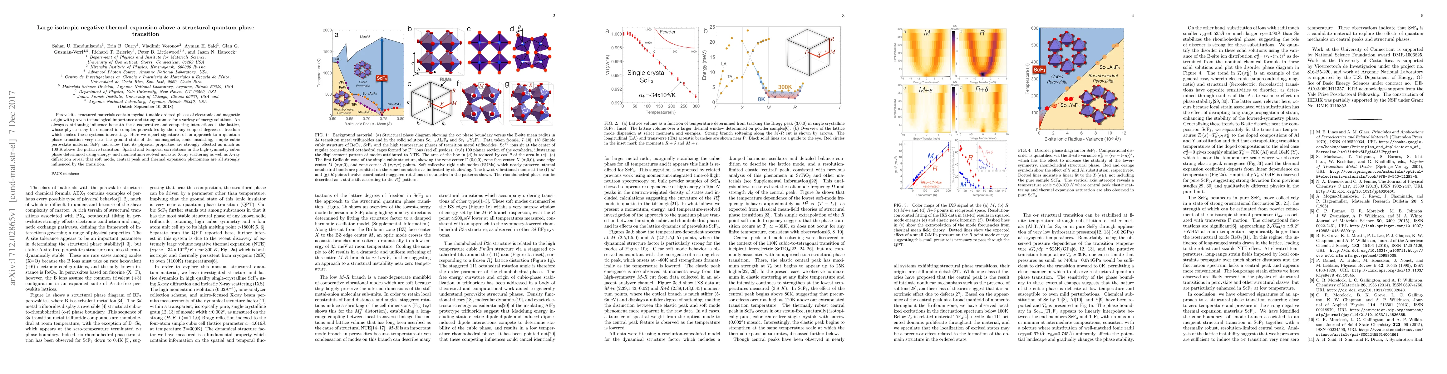 This paper reports significant negative thermal expansion in ScF3 perovskite near a quantum phase transition, observed 100 K above the transition. Inelastic X-ray scattering and diffraction reveal strong influences on soft mode, central peak, and thermal expansion phenomena.