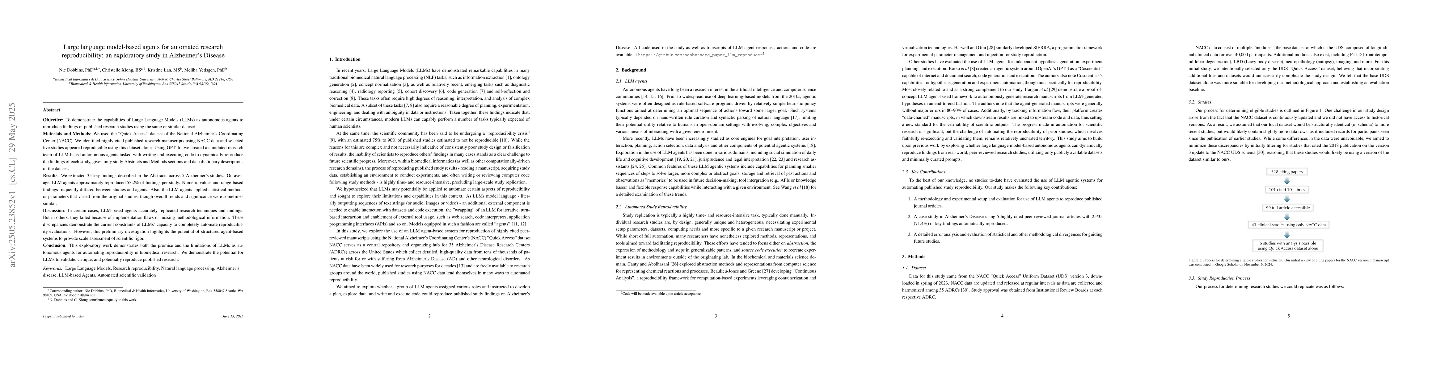 Demonstrated the use of LLM-based agents for automated reproduction of research findings in Alzheimer's disease studies.