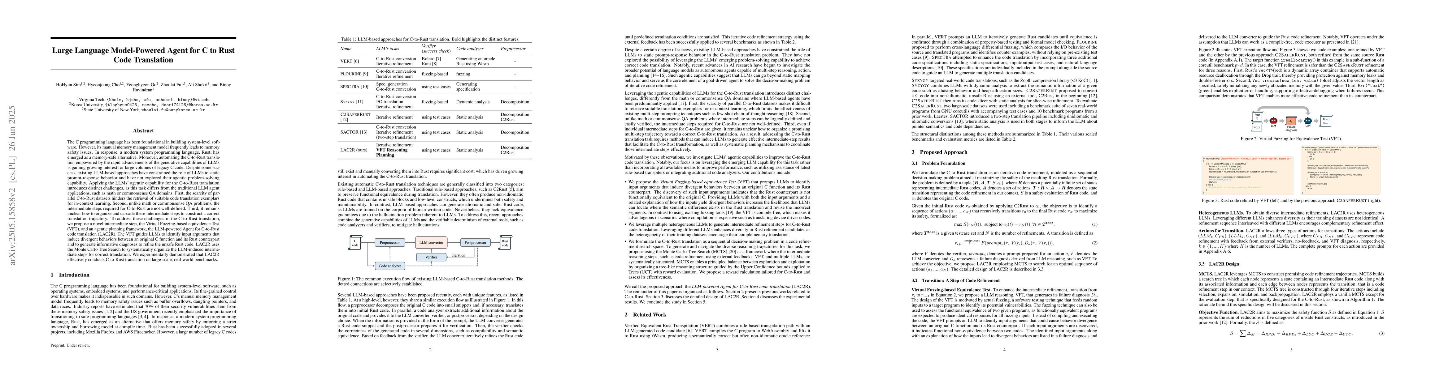 A novel approach using Large Language Models (LLMs) to translate C-to-Rust code introduces a Virtual Fuzzing-based equivalence Test and an agentic planning framework, achieving effective translation on large-scale real-world benchmarks.