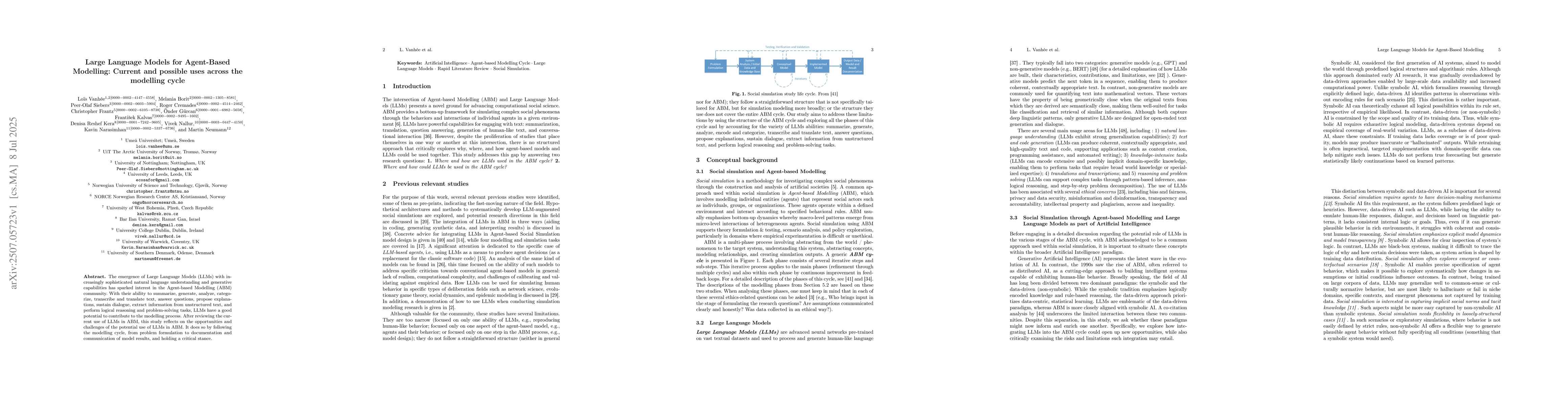 The emergence of Large Language Models (LLMs) with increasingly sophisticated natural language understanding and generative capabilities has sparked interest in the Agent-based Modelling (ABM) community. With their ability to summarize, generate, analyze, categorize, transcribe and translate text, answer questions, propose explanations, sustain dialogue, extract information from unstructured text, and perform logical reasoning and problem-solving tasks, LLMs have a good potential to contribute to the modelling process. After reviewing the current use of LLMs in ABM, this study reflects on the opportunities and challenges of the potential use of LLMs in ABM. It does so by following the modelling cycle, from problem formulation to documentation and communication of model results, and holding a critical stance.