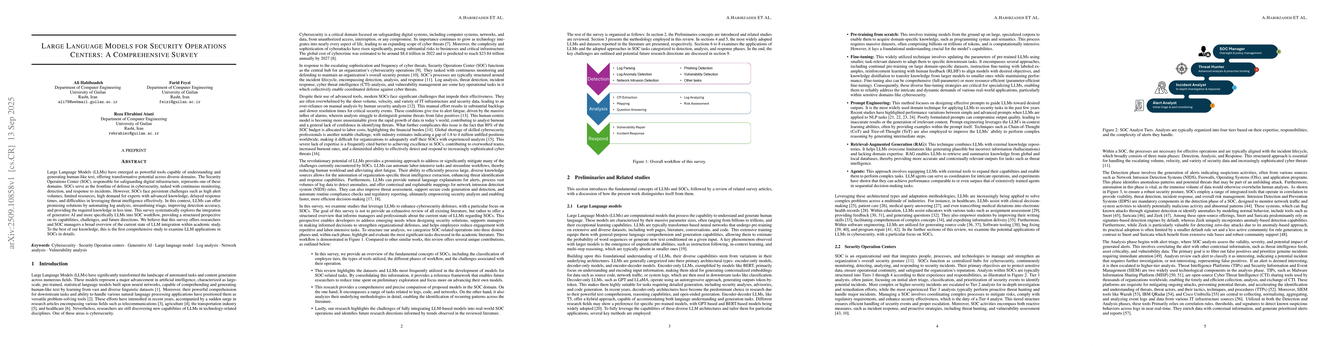 Large Language Models (LLMs) have emerged as powerful tools capable of understanding and generating human-like text, offering transformative potential across diverse domains. The Security Operations Center (SOC), responsible for safeguarding digital infrastructure, represents one of these domains. SOCs serve as the frontline of defense in cybersecurity, tasked with continuous monitoring, detection, and response to incidents. However, SOCs face persistent challenges such as high alert volumes, limited resources, high demand for experts with advanced knowledge, delayed response times, and difficulties in leveraging threat intelligence effectively. In this context, LLMs can offer promising solutions by automating log analysis, streamlining triage, improving detection accuracy, and providing the required knowledge in less time. This survey systematically explores the integration of generative AI and more specifically LLMs into SOC workflow, providing a structured perspective on its capabilities, challenges, and future directions. We believe that this survey offers researchers and SOC managers a broad overview of the current state of LLM integration within academic study. To the best of our knowledge, this is the first comprehensive study to examine LLM applications in SOCs in details.