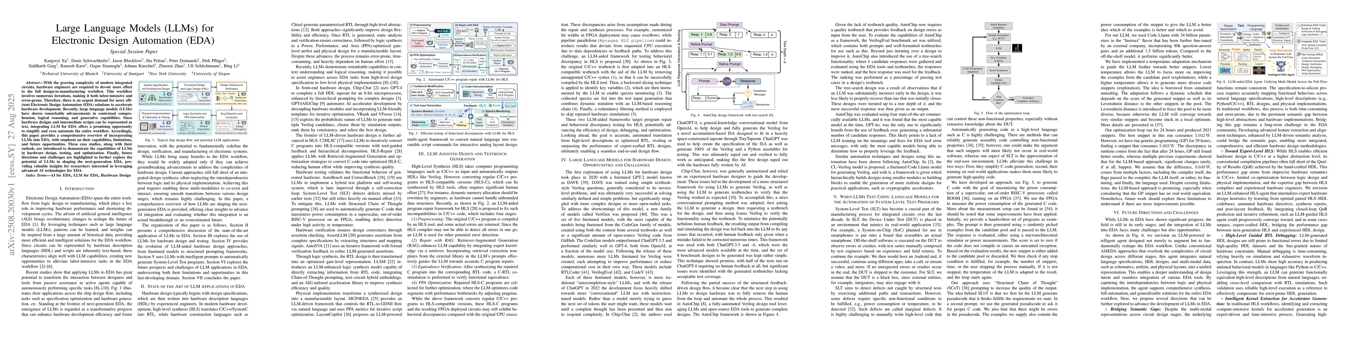 With the growing complexity of modern integrated circuits, hardware engineers are required to devote more effort to the full design-to-manufacturing workflow. This workflow involves numerous iterations, making it both labor-intensive and error-prone. Therefore, there is an urgent demand for more efficient Electronic Design Automation (EDA) solutions to accelerate hardware development. Recently, large language models (LLMs) have shown remarkable advancements in contextual comprehension, logical reasoning, and generative capabilities. Since hardware designs and intermediate scripts can be represented as text, integrating LLM for EDA offers a promising opportunity to simplify and even automate the entire workflow. Accordingly, this paper provides a comprehensive overview of incorporating LLMs into EDA, with emphasis on their capabilities, limitations, and future opportunities. Three case studies, along with their outlook, are introduced to demonstrate the capabilities of LLMs in hardware design, testing, and optimization. Finally, future directions and challenges are highlighted to further explore the potential of LLMs in shaping the next-generation EDA, providing valuable insights for researchers interested in leveraging advanced AI technologies for EDA.