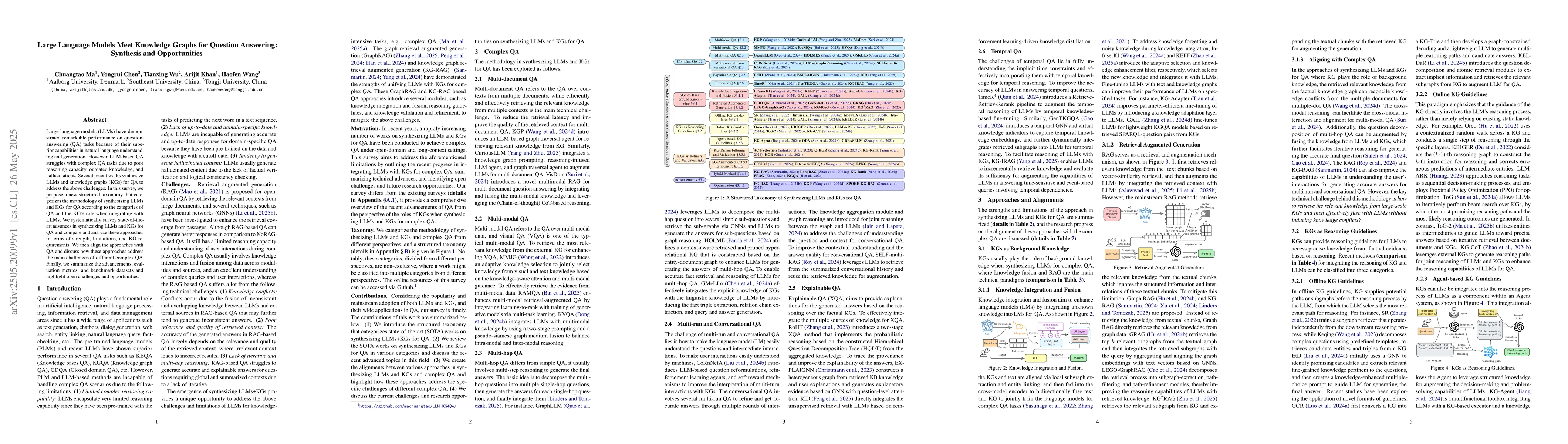 Researchers synthesized large language models with knowledge graphs to improve question-answering performance, overcoming challenges like poor reasoning and outdated knowledge. A taxonomy categorizes approaches addressing these issues for complex QA tasks.
