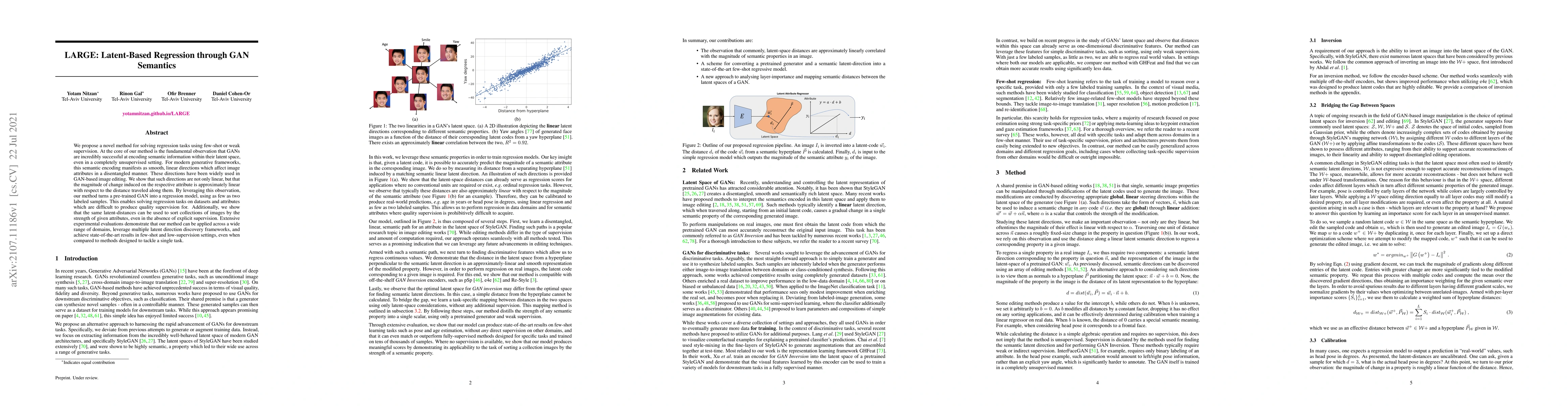 We propose a novel method for solving regression tasks using few-shot or weak supervision. At the core of our method is the fundamental observation that GANs are incredibly successful at encoding semantic information within their latent space, even in a completely unsupervised setting. For modern generative frameworks, this semantic encoding manifests as smooth, linear directions which affect image attributes in a disentangled manner. These directions have been widely used in GAN-based image editing. We show that such directions are not only linear, but that the magnitude of change induced on the respective attribute is approximately linear with respect to the distance traveled along them. By leveraging this observation, our method turns a pre-trained GAN into a regression model, using as few as two labeled samples. This enables solving regression tasks on datasets and attributes which are difficult to produce quality supervision for. Additionally, we show that the same latent-distances can be used to sort collections of images by the strength of given attributes, even in the absence of explicit supervision. Extensive experimental evaluations demonstrate that our method can be applied across a wide range of domains, leverage multiple latent direction discovery frameworks, and achieve state-of-the-art results in few-shot and low-supervision settings, even when compared to methods designed to tackle a single task.