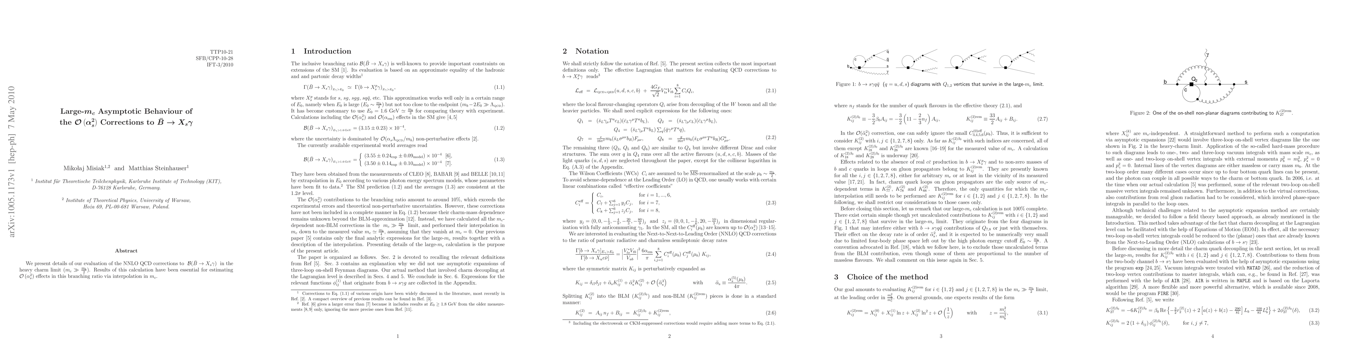 We present details of our evaluation of the NNLO QCD corrections to BR(B -> X_s gamma) in the heavy charm limit m_c >> m_b/2. Results of this calculation have been essential for estimating O(alpha_s^2) effects in this branching ratio via interpolation in m_c.