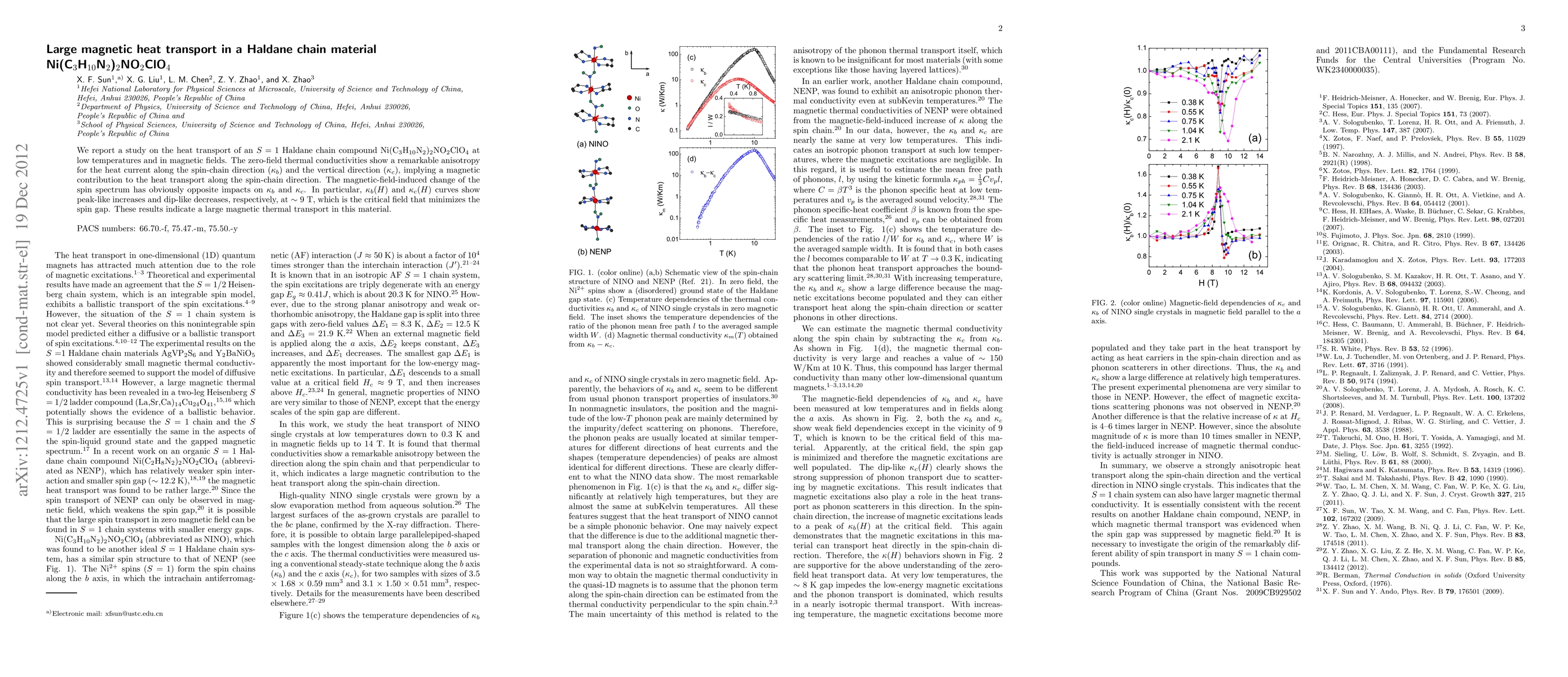 We report a study on the heat transport of an S = 1 Haldane chain compound Ni(C_3H_{10}N_2)_2NO_2ClO_4 at low temperatures and in magnetic fields. The zero-field thermal conductivities show a remarkable anisotropy for the heat current along the spin-chain direction (\kappa_b) and the vertical direction (\kappa_c), implying a magnetic contribution to the heat transport along the spin-chain direction. The magnetic-field-induced change of the spin spectrum has obviously opposite impacts on \kappa_b and \kappa_c. In particular, \kappa_b(H) and \kappa_c(H) curves show peak-like increases and dip-like decreases, respectively, at \sim 9 T, which is the critical field that minimizes the spin gap. These results indicate a large magnetic thermal transport in this material.